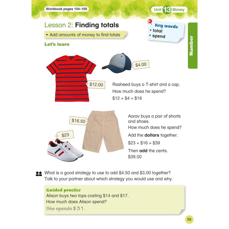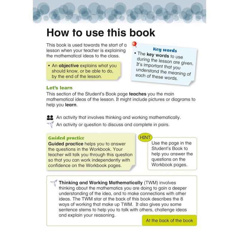 Each lesson is based on a ‘big idea’, providing an engaging, exciting theme which is anchored in a real-life international context. Activities, exercises and investigations provide opportunities for learners to apply their knowledge, skills and understanding of the mathematics they are learning. The course develops learners’ Thinking and Working Mathematically skills and offers opportunities for group and individual learning. The series also supports Cambridge Global Perspectives™ with activities that develop and practise key skills.