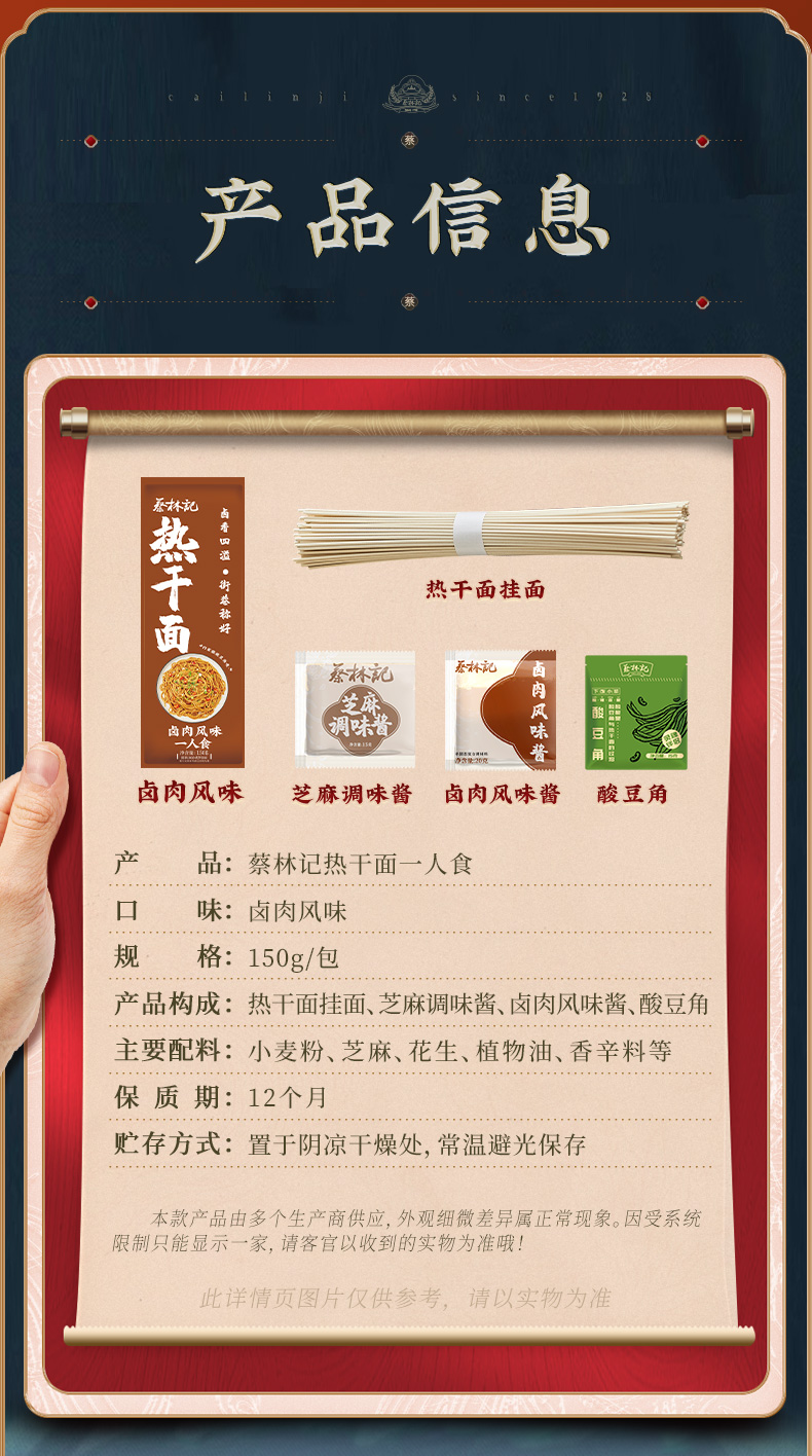 【老字号】门店同款 蔡林记 武汉热干面 原味/卤肉味/红油味 150g*12