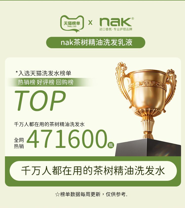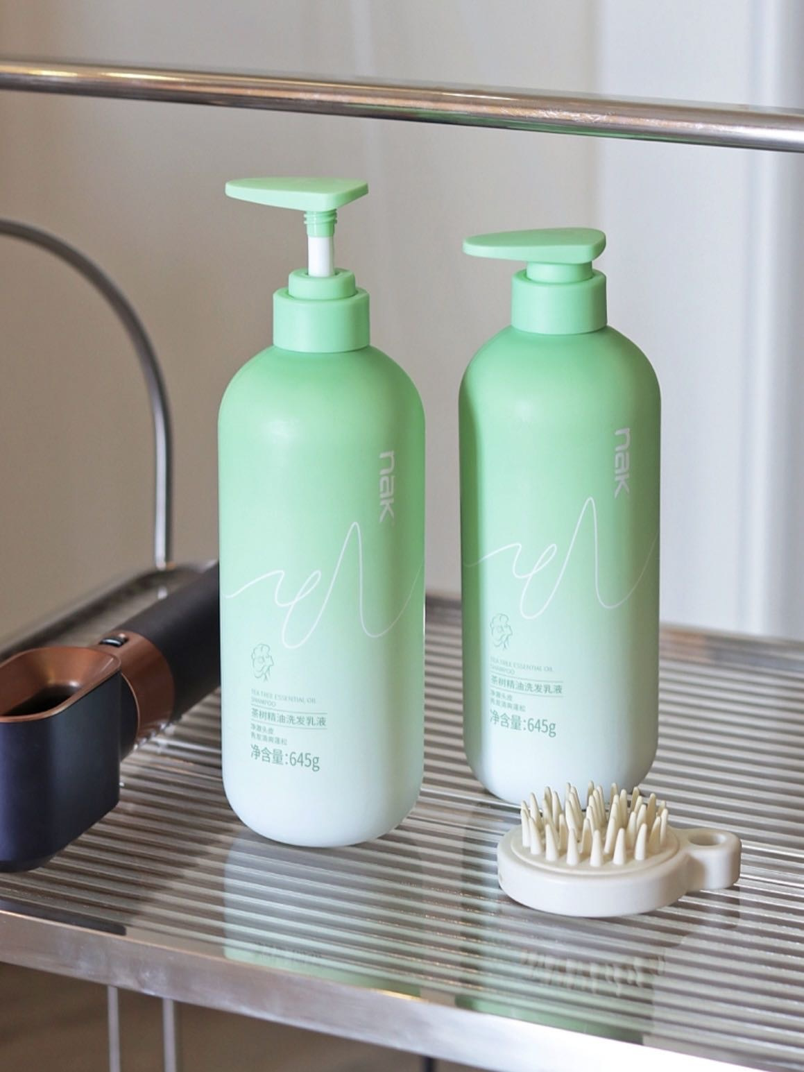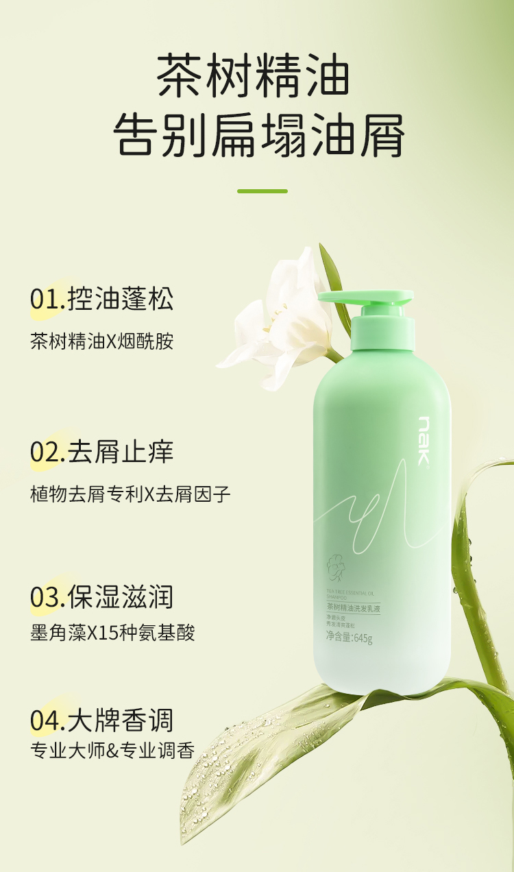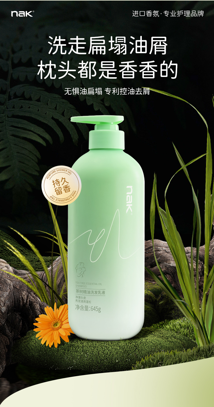 【任选两瓶】胖东来爆款!!nak茶树精油洗发乳;改善头皮水油失衡,茶树精油乳液型净养头皮、专去屑控油利成份;645ml瓶