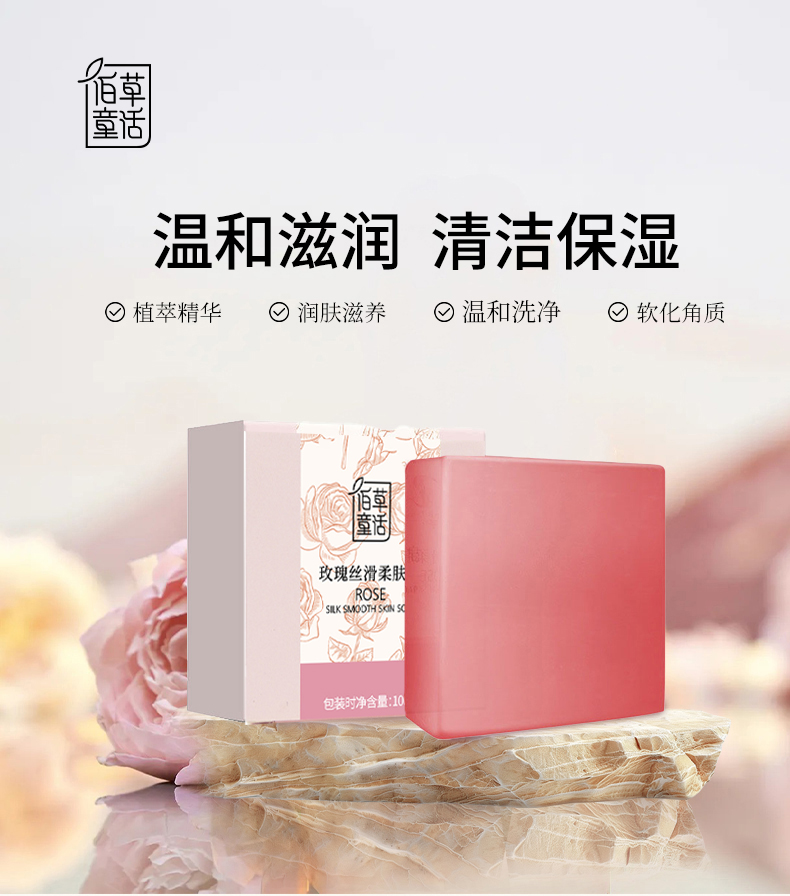 【产品名称】:佰草童话玫瑰丝滑柔肤皂