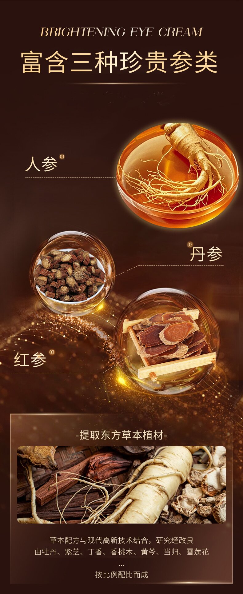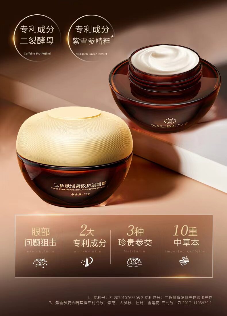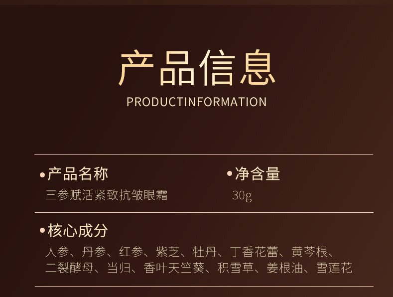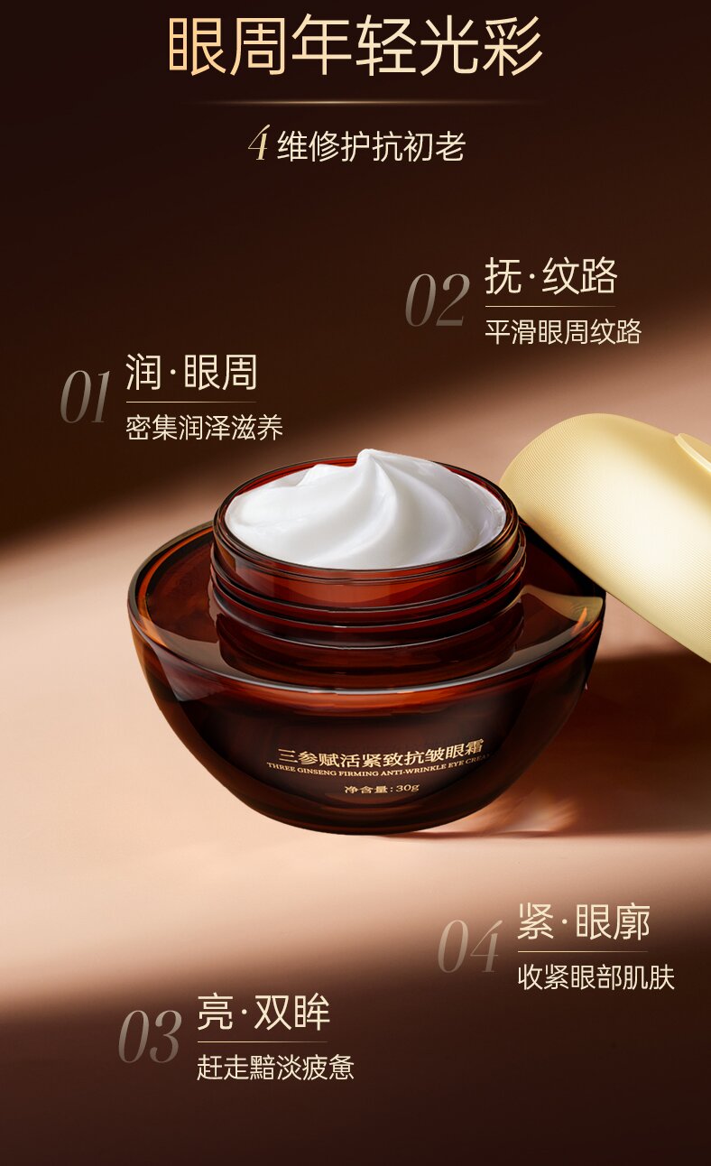 三参眼霜 二裂酵母专利成分 添加人参丹参红参 修本抗皱焕活轻熟龄眼周肌肤眼霜 30g/盒
