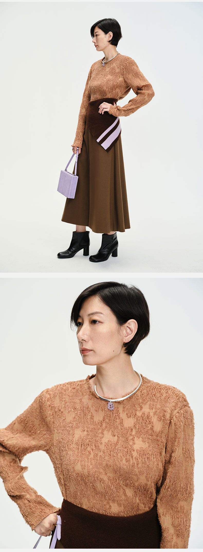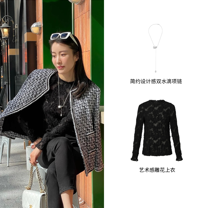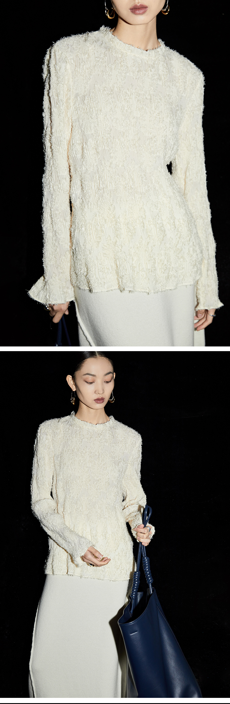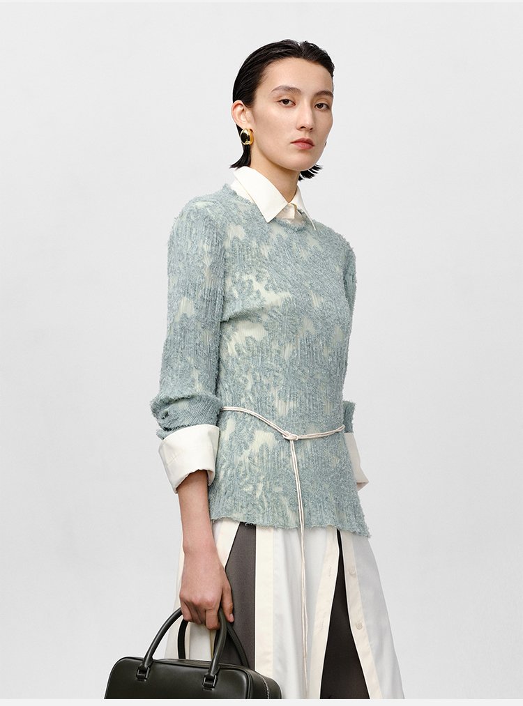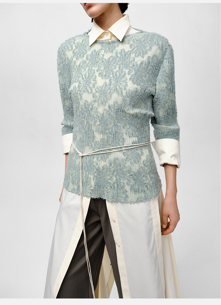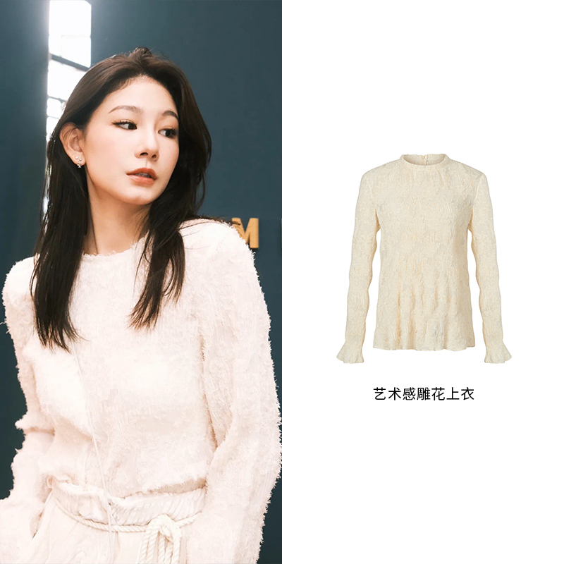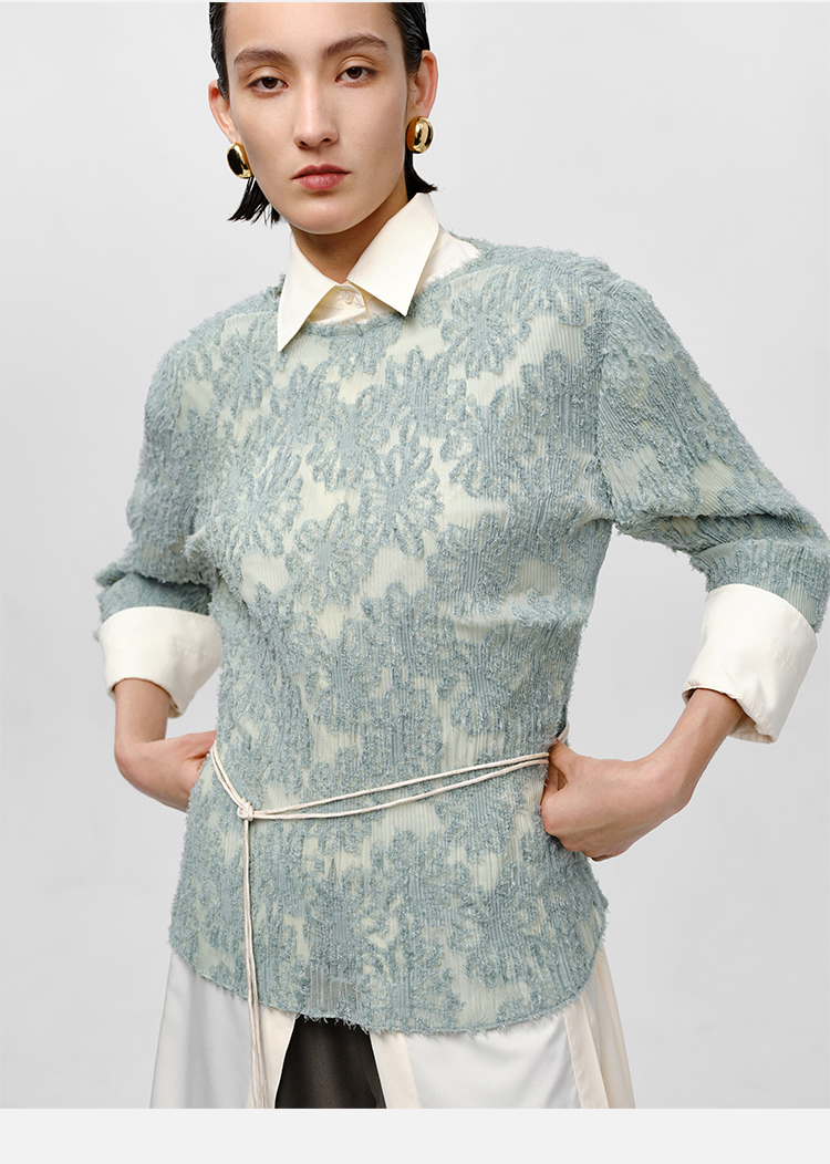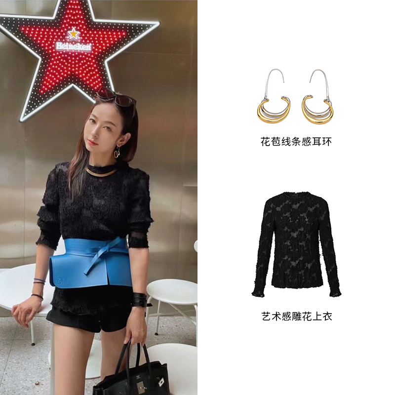 HIDEMI 到店必入艺术感雕花弹力上衣 黑色/米白色/奶油紫/巧克⼒⾊/清风绿