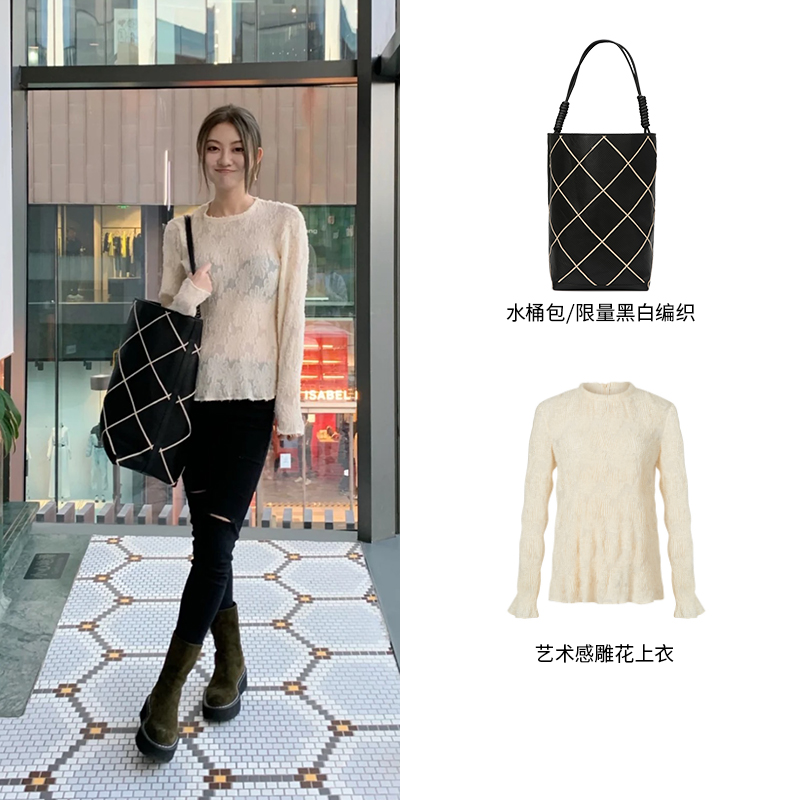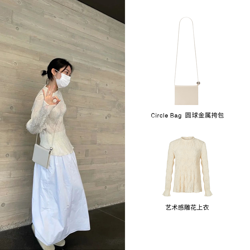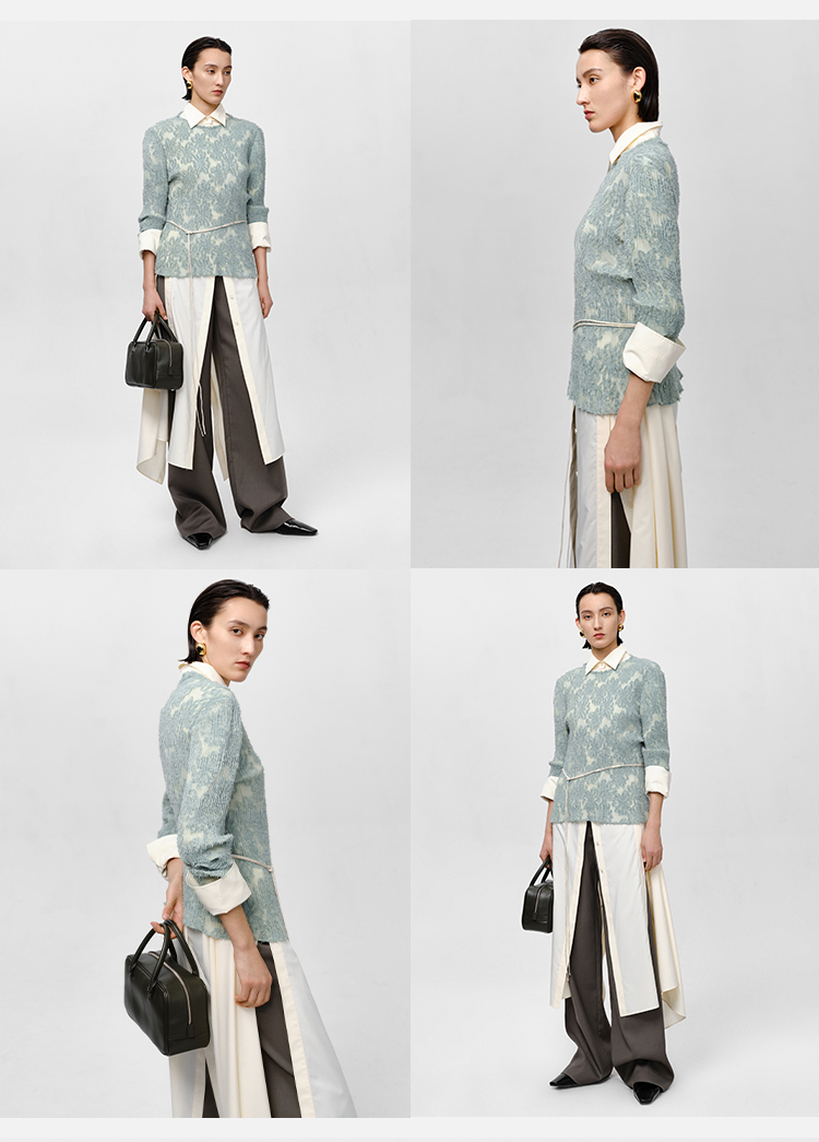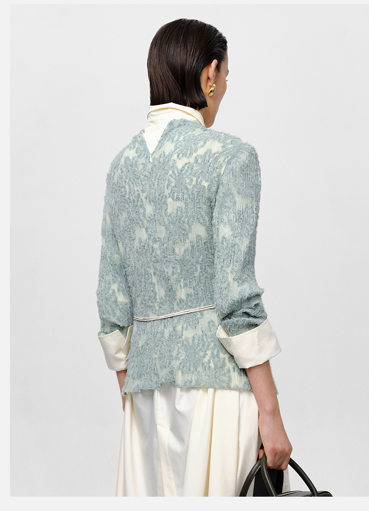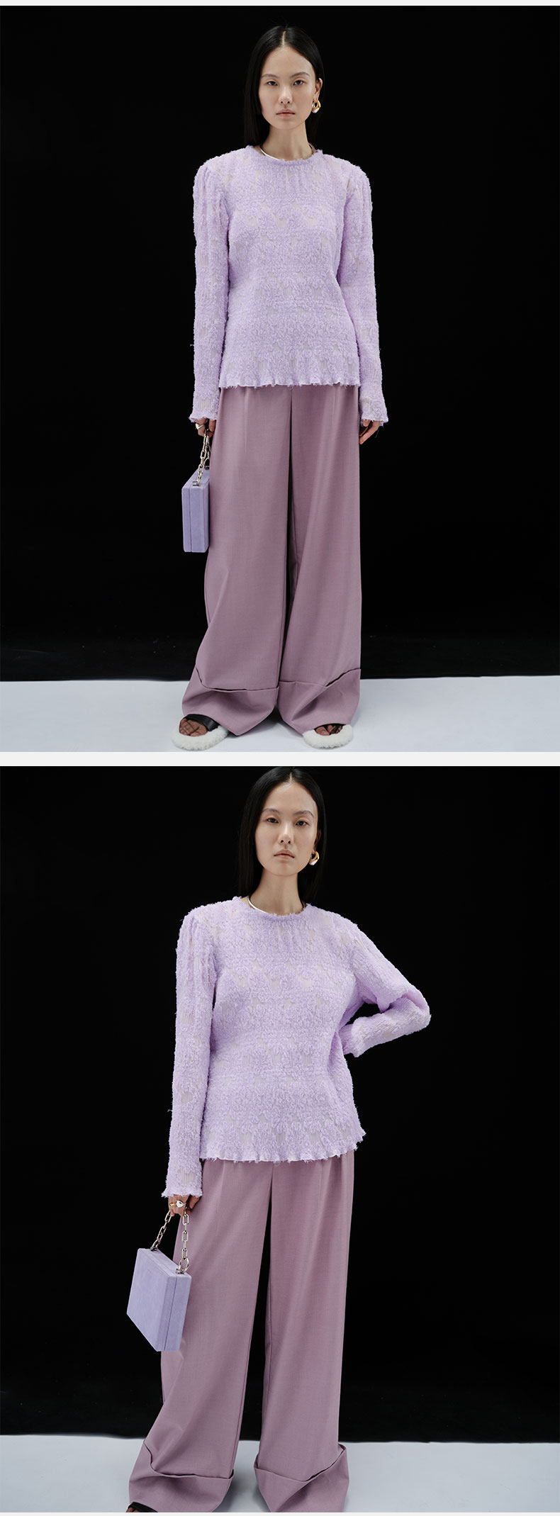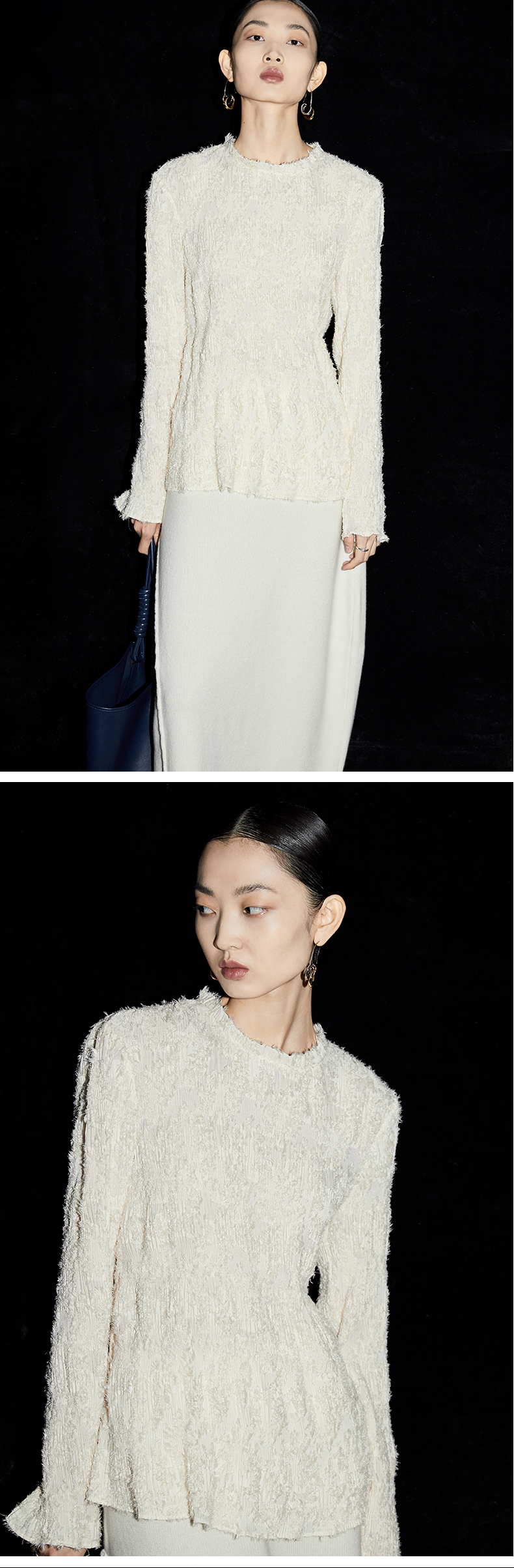 HIDEMI 到店必入艺术感雕花弹力上衣 黑色/米白色/奶油紫/巧克⼒⾊/清风绿