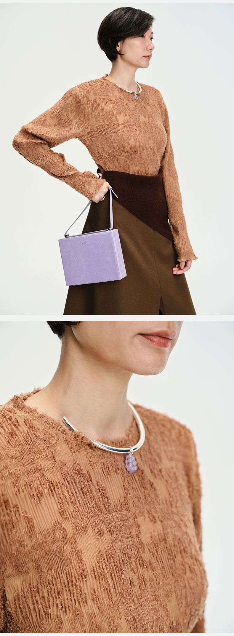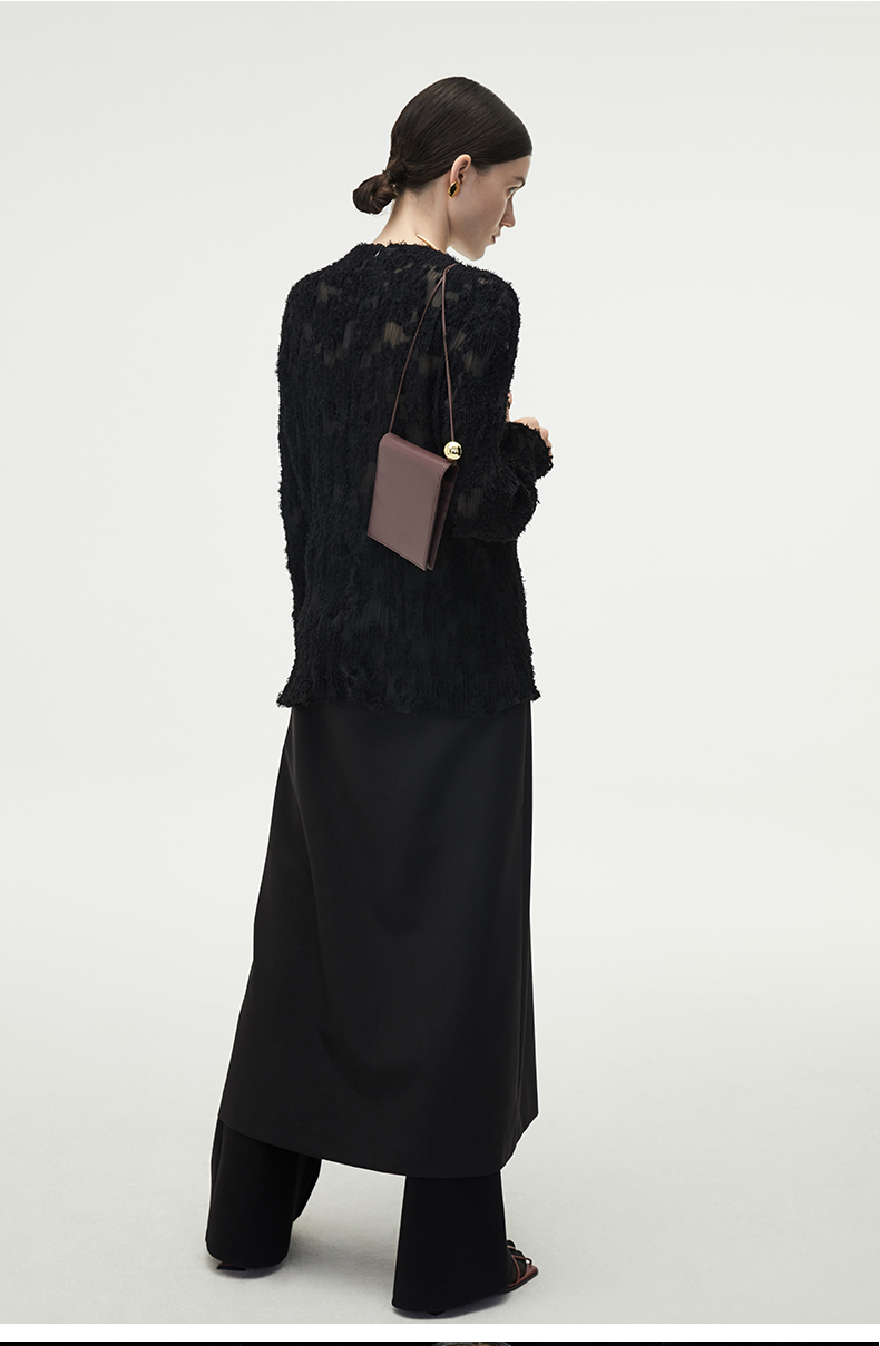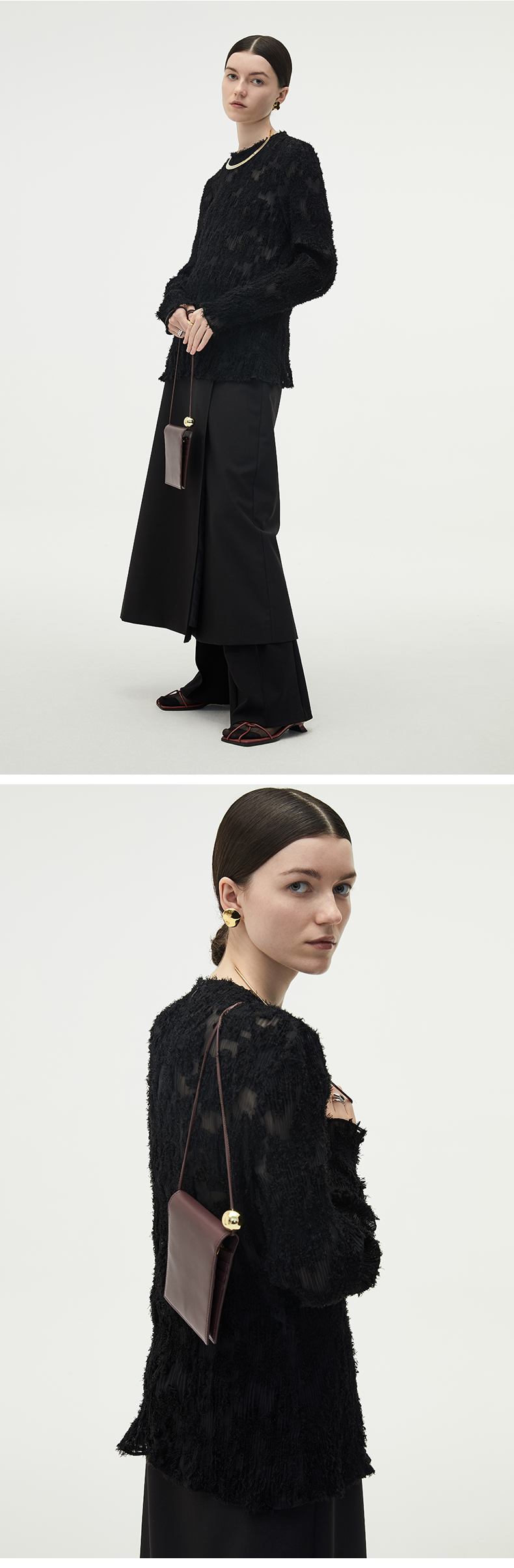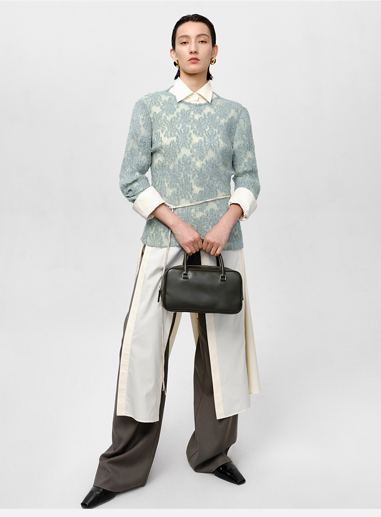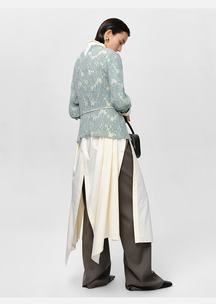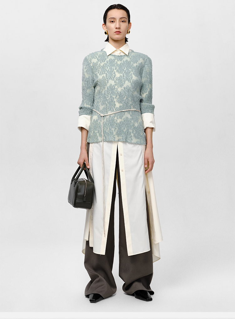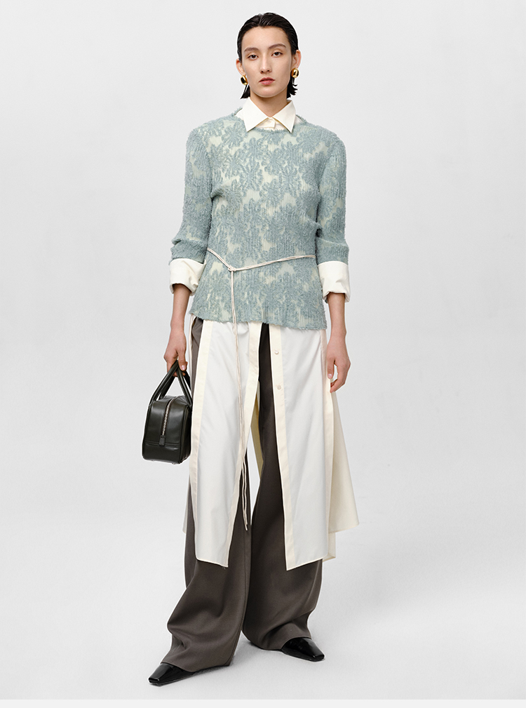 HIDEMI 到店必入艺术感雕花弹力上衣 黑色/米白色/奶油紫/巧克⼒⾊/清风绿