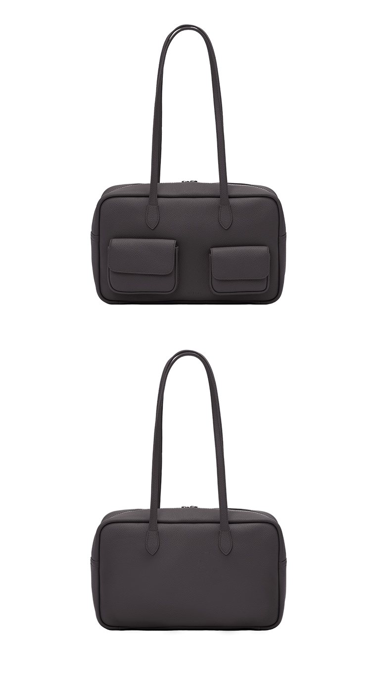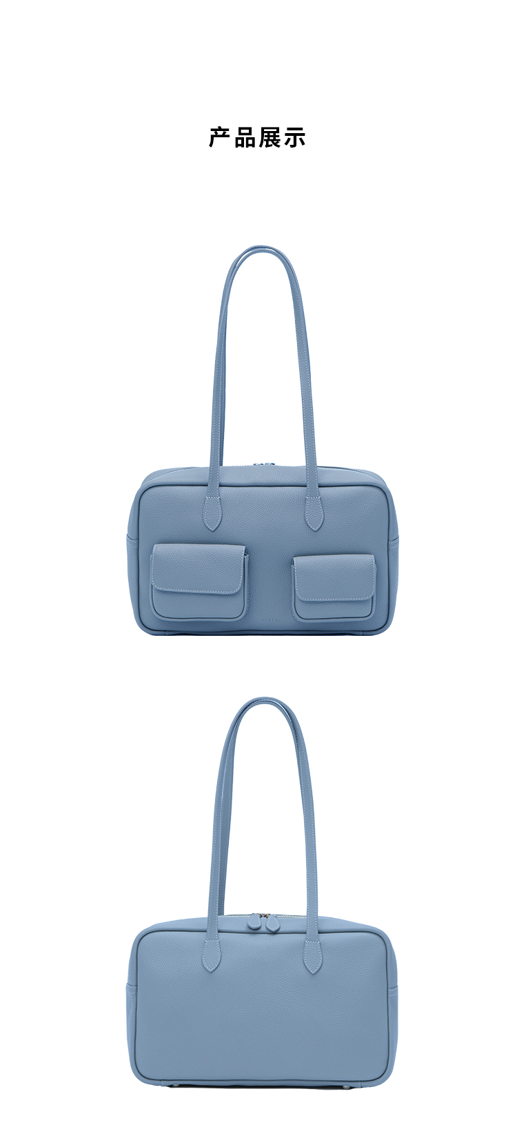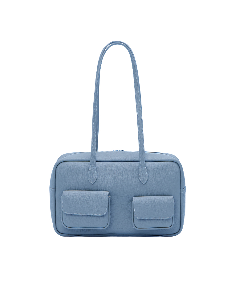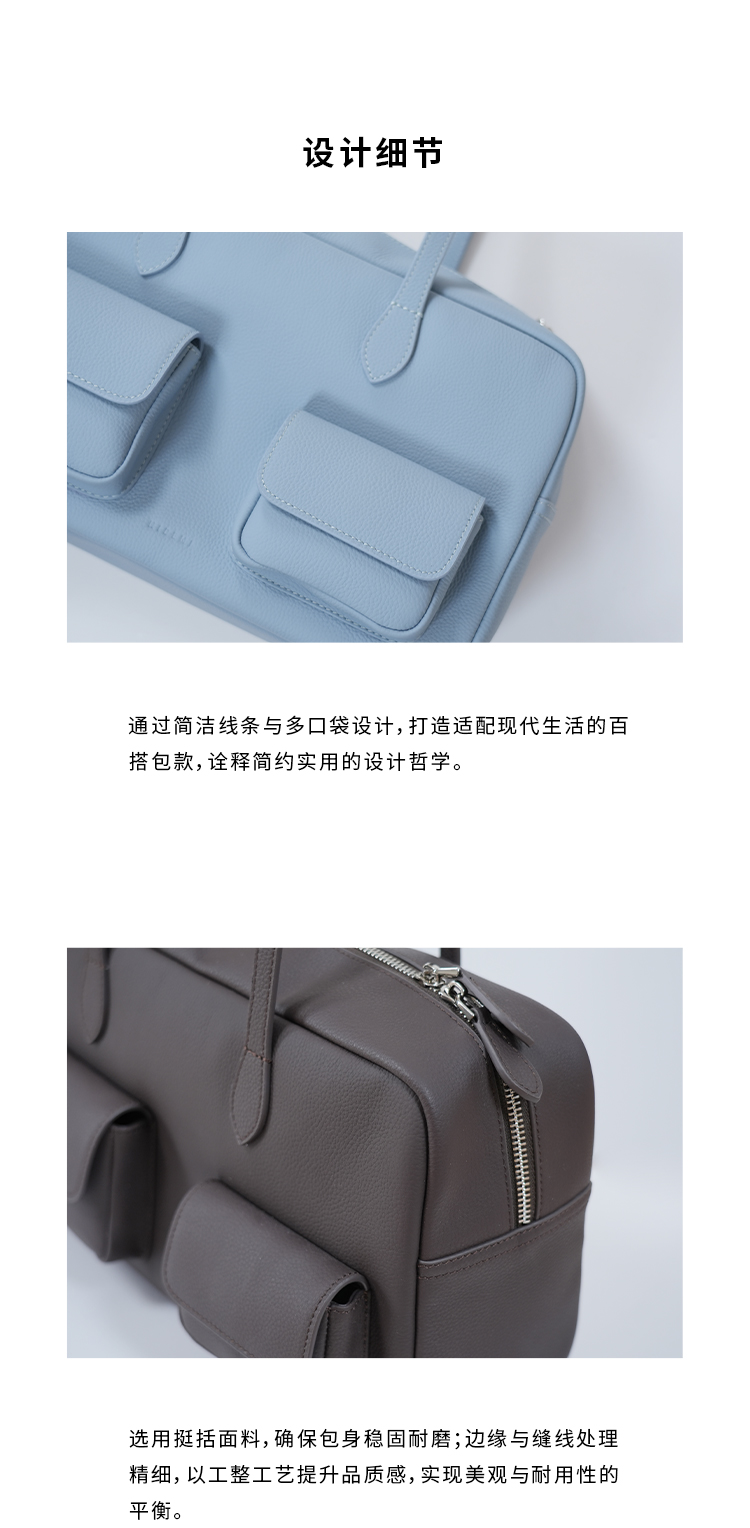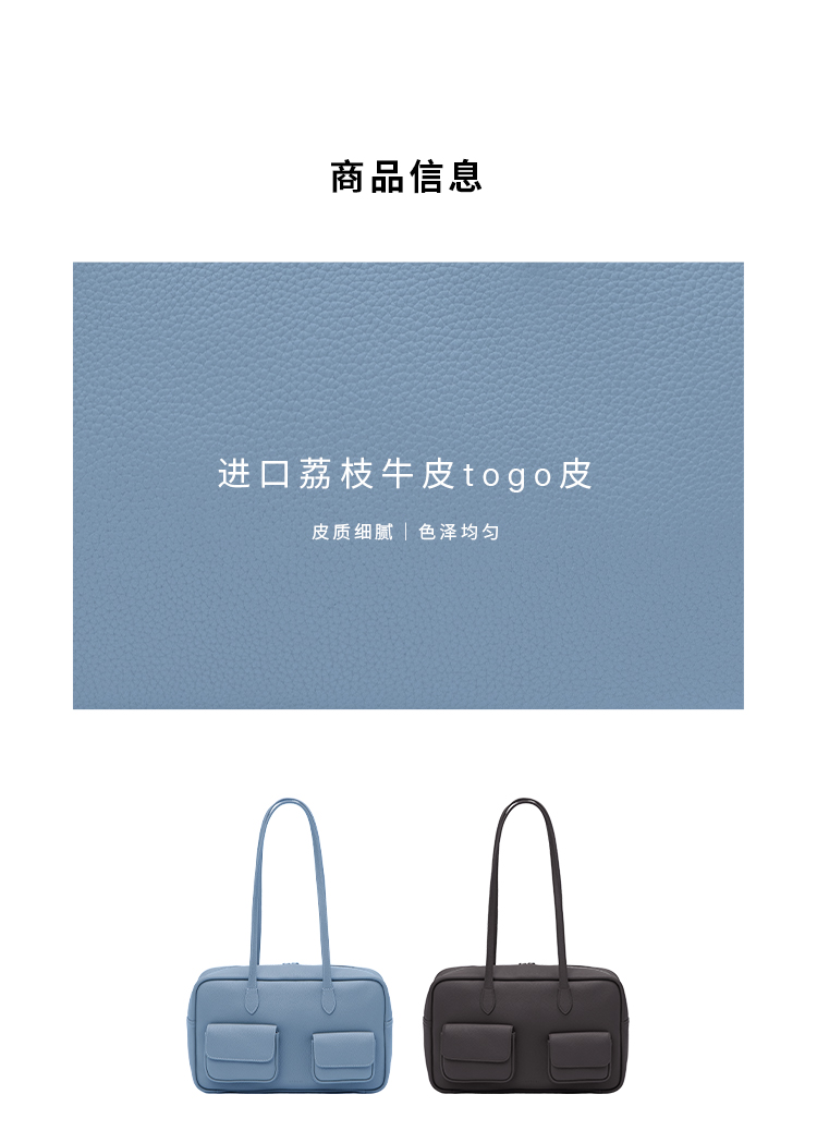 HIDEMI进口荔枝牛皮togo皮波士顿多功能斜跨手提包 中号 乌木棕/亚麻蓝
