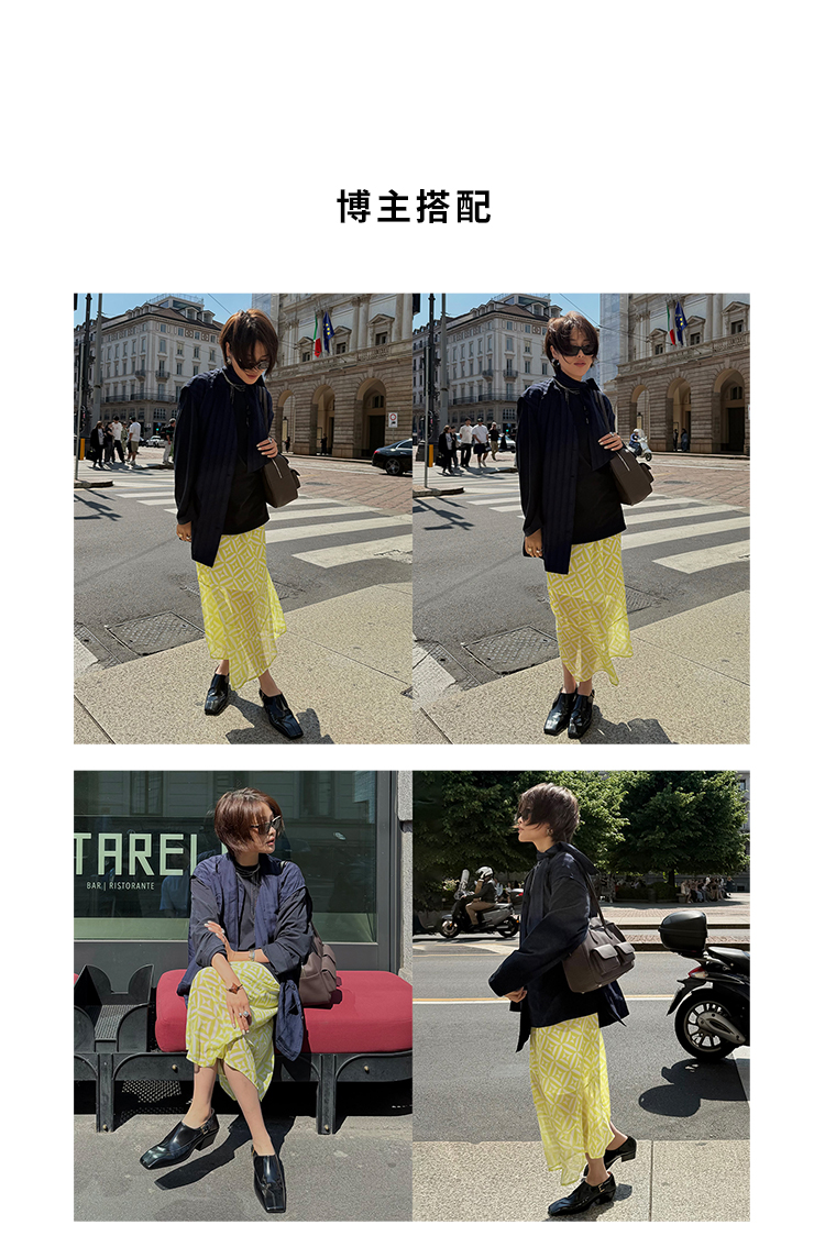 HIDEMI 简约设计感微荡立领半袖廓形套装 黑色/白色 上衣/半身裙