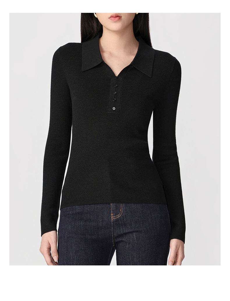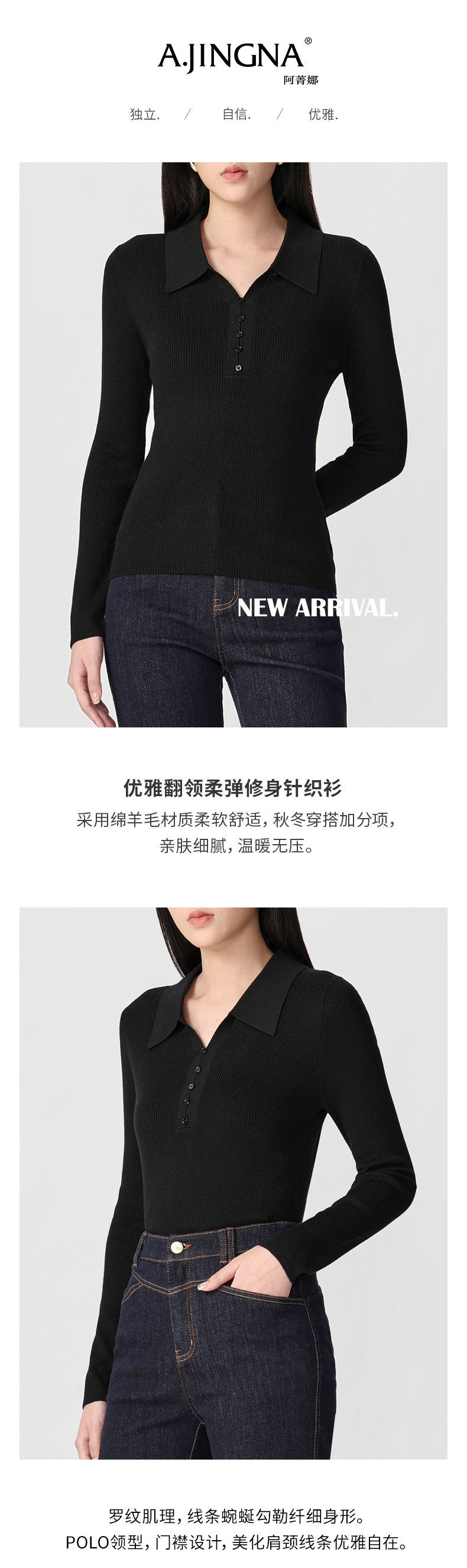 【温暖无压】阿菁娜优雅翻领柔弹修身针织衫F30Q302056