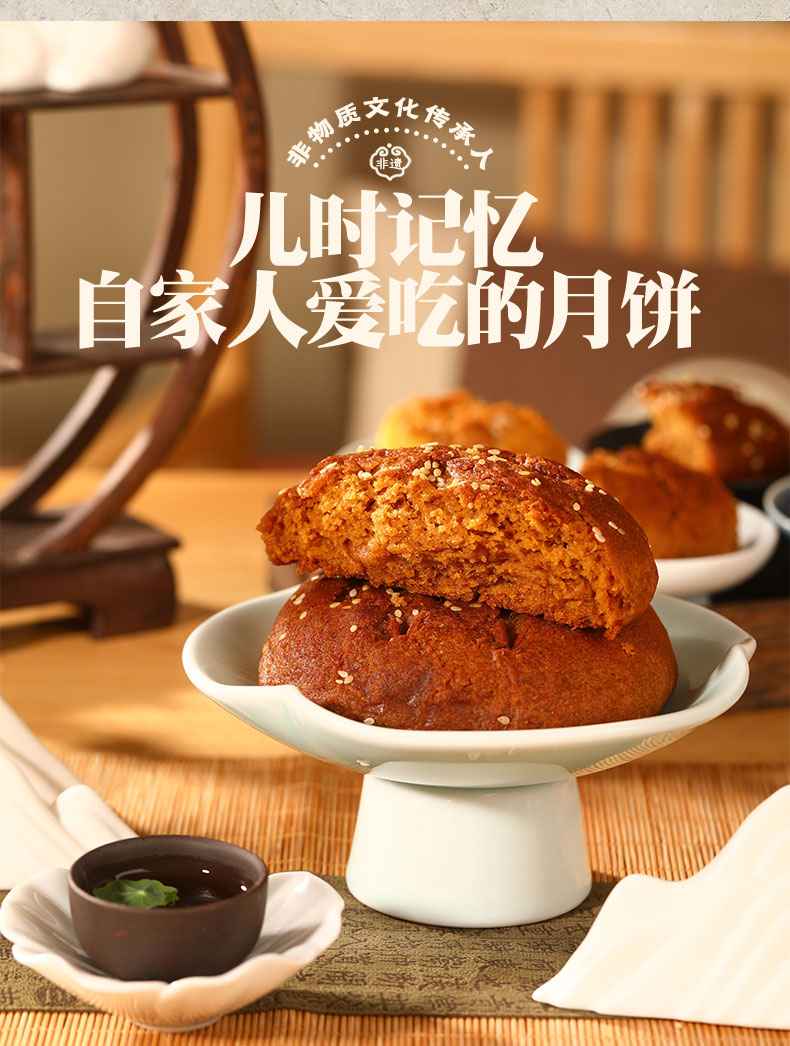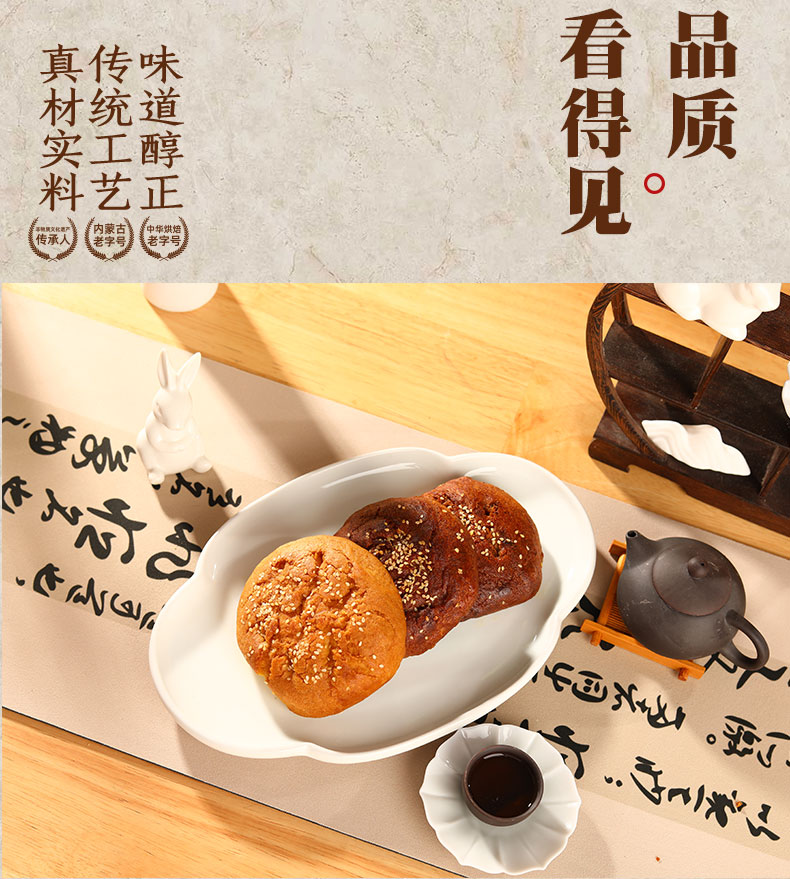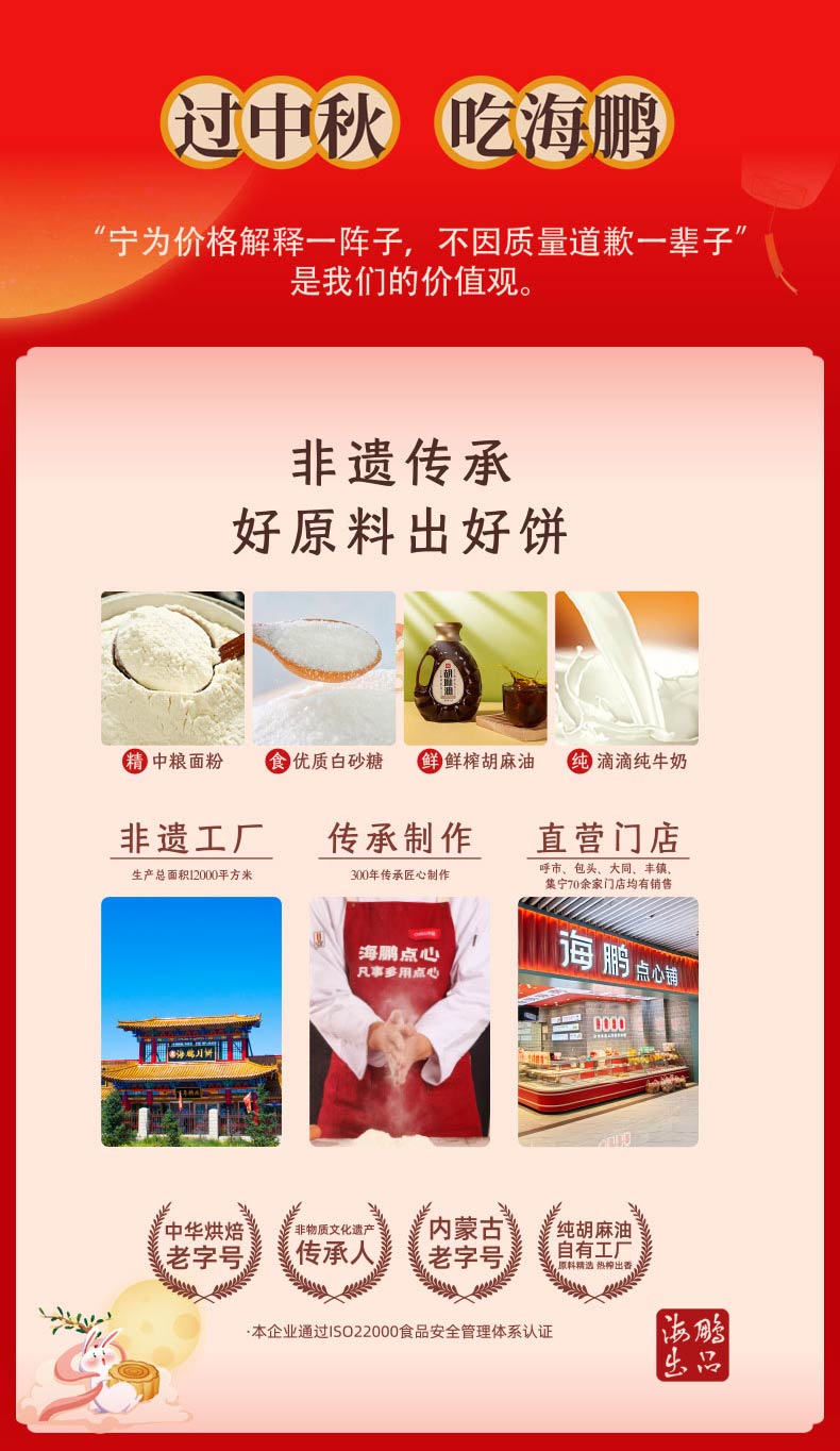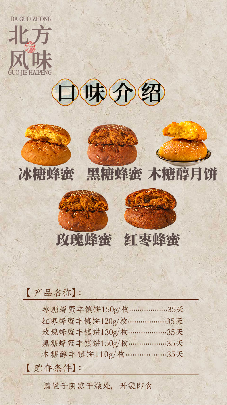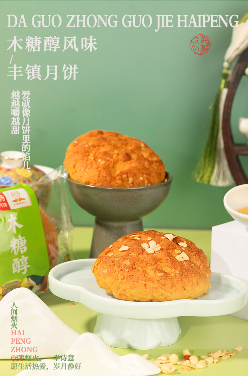 【传统月饼】海鹏丰镇月饼玫瑰、红枣、冰糖、黑糖蜂蜜、木糖醇月饼特色胡麻油糕点5枚装