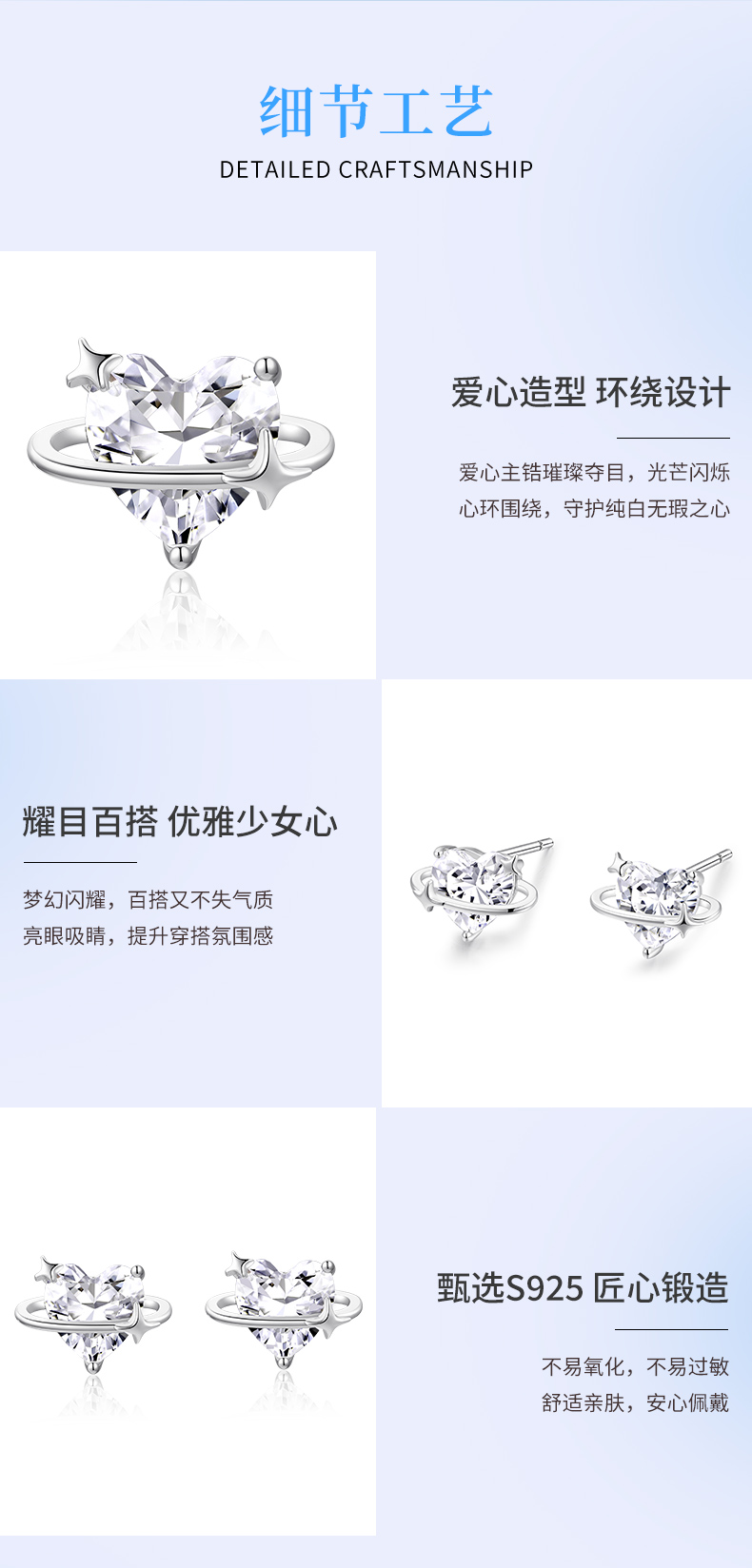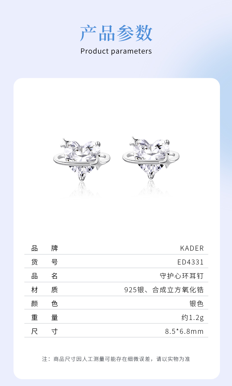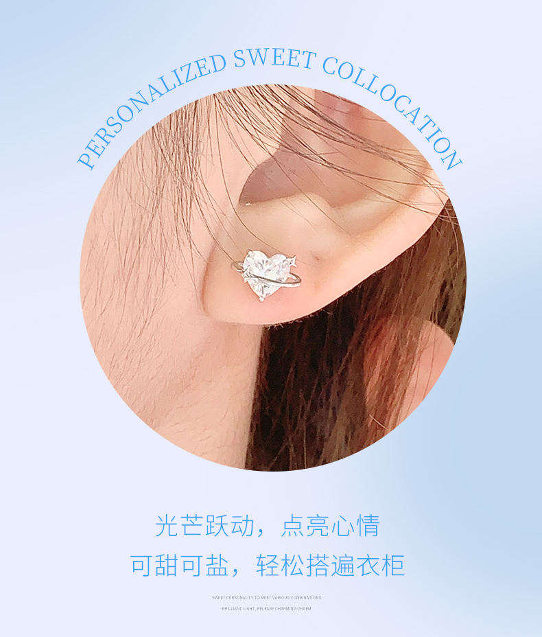 卡蒂罗/KADER 守护心环耳钉 经典爱心造型轻奢璀璨时尚春夏百搭纯银耳饰 闪耀星点梦幻设计养耳洞睡觉免摘配饰