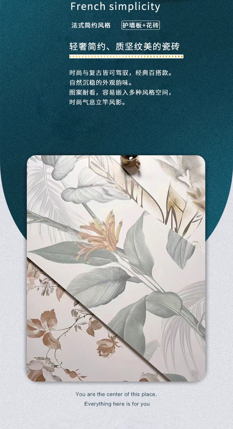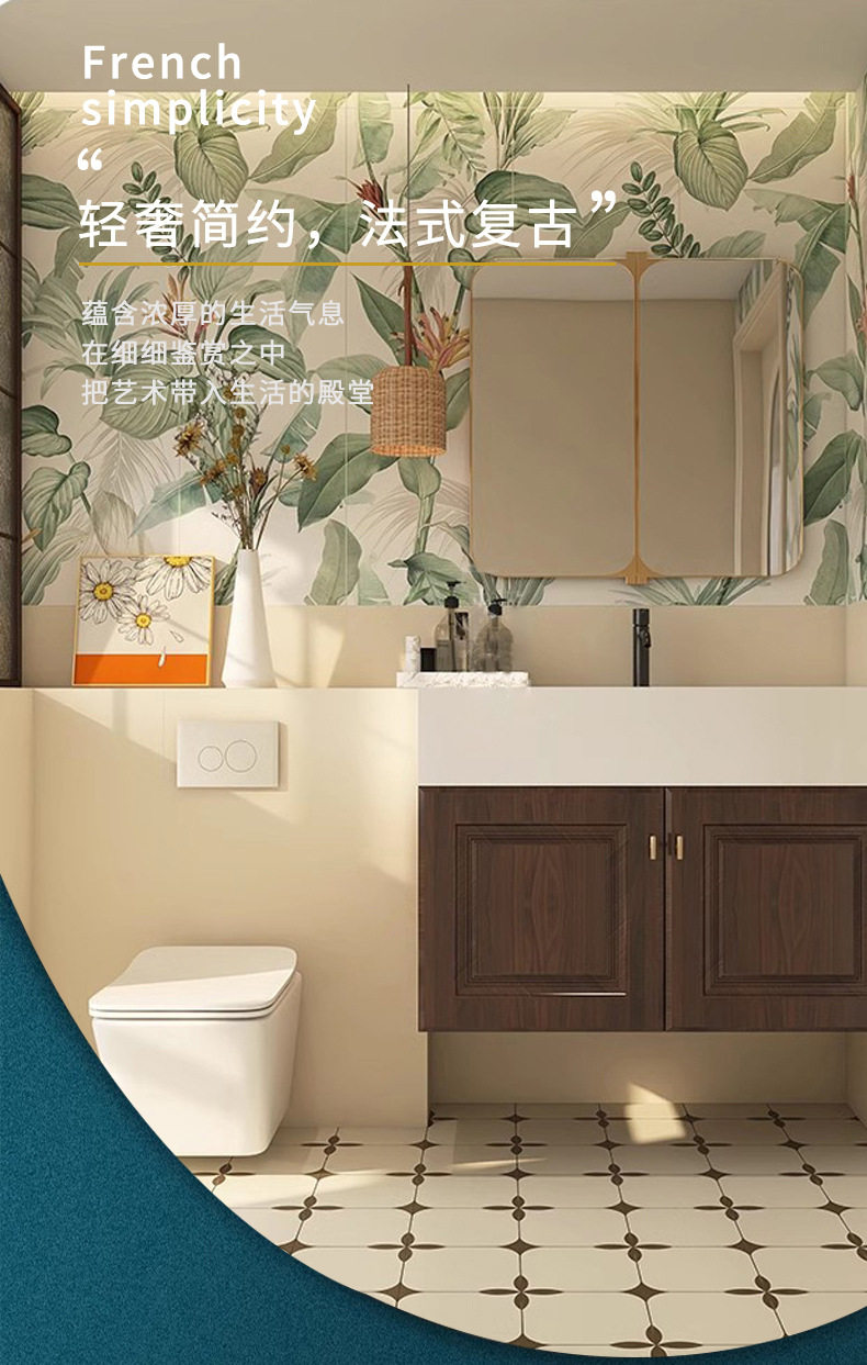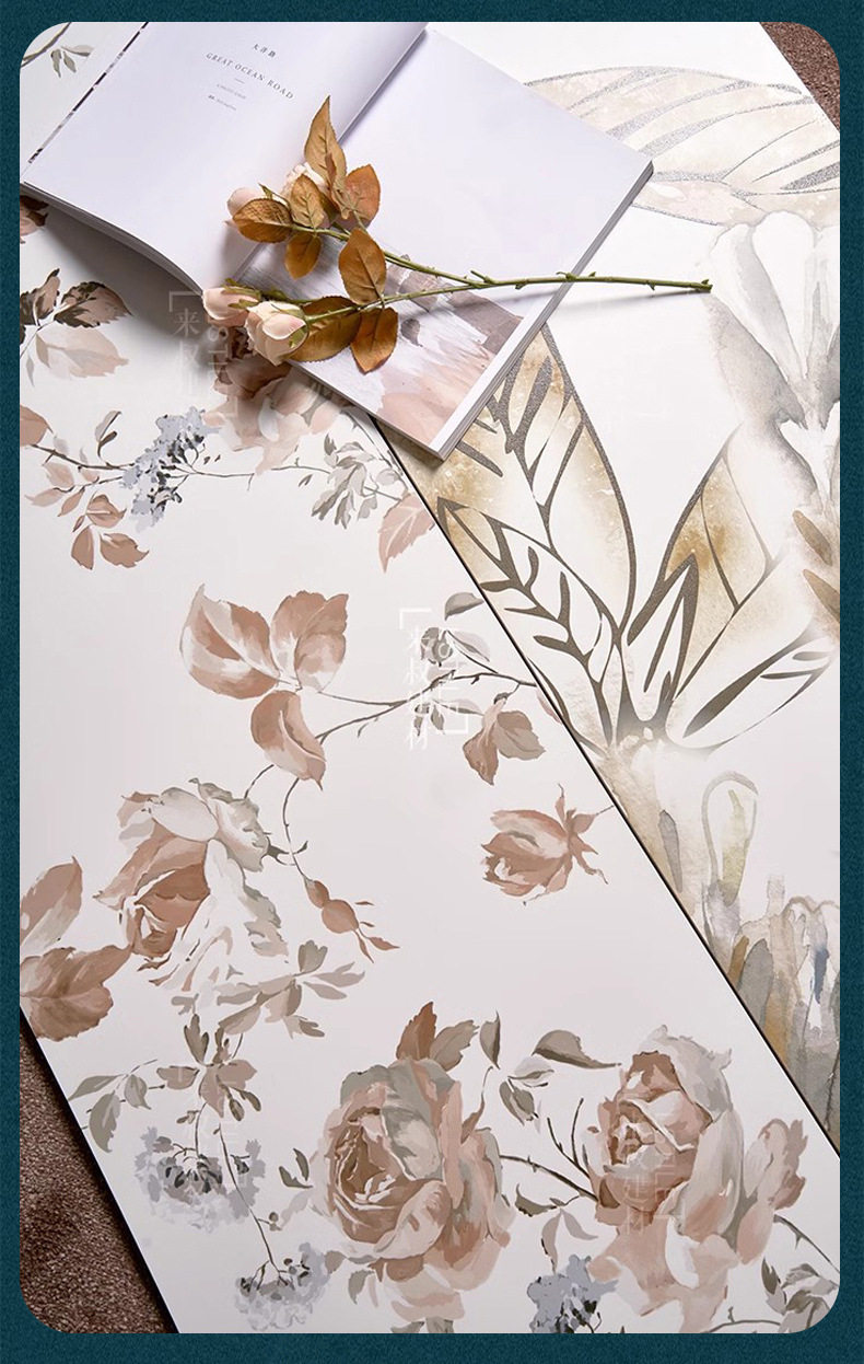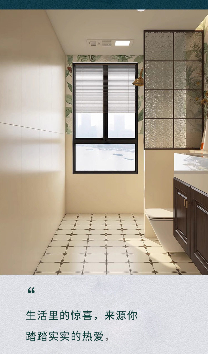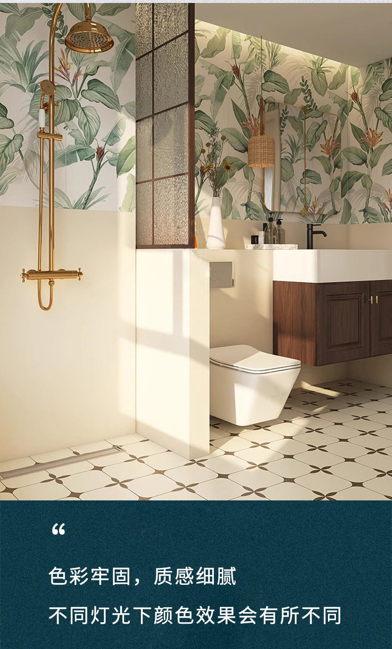 400卫生间植物花砖防滑地砖轻x1200瓷砖背景浴室厨房复古墙砖法式