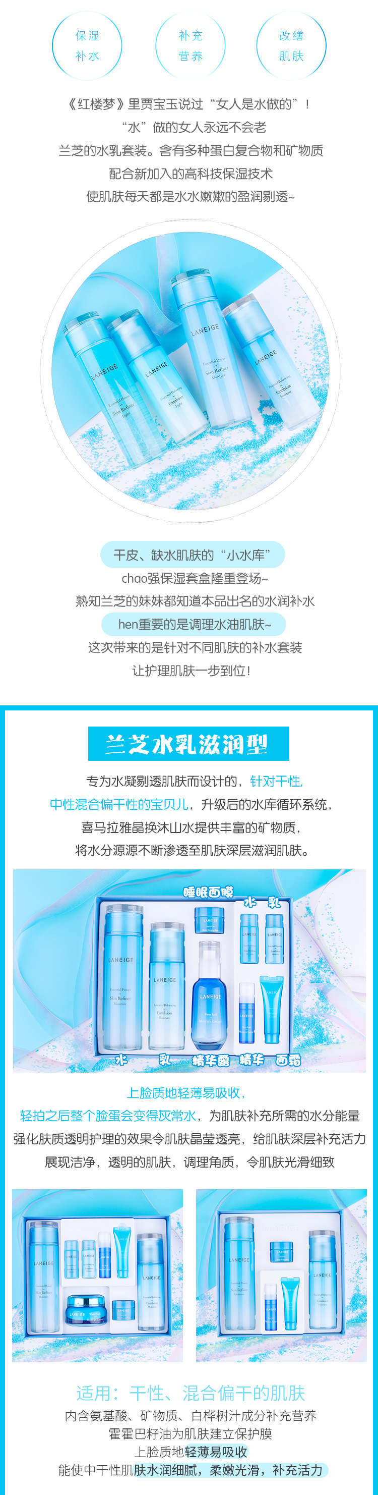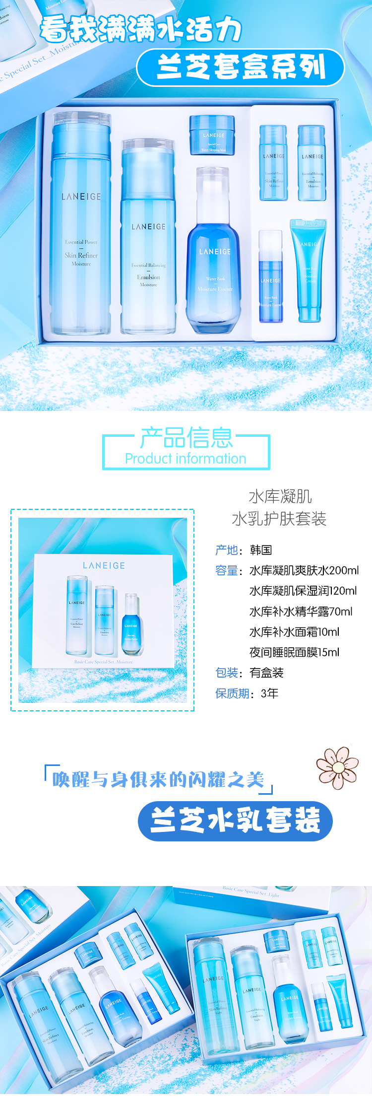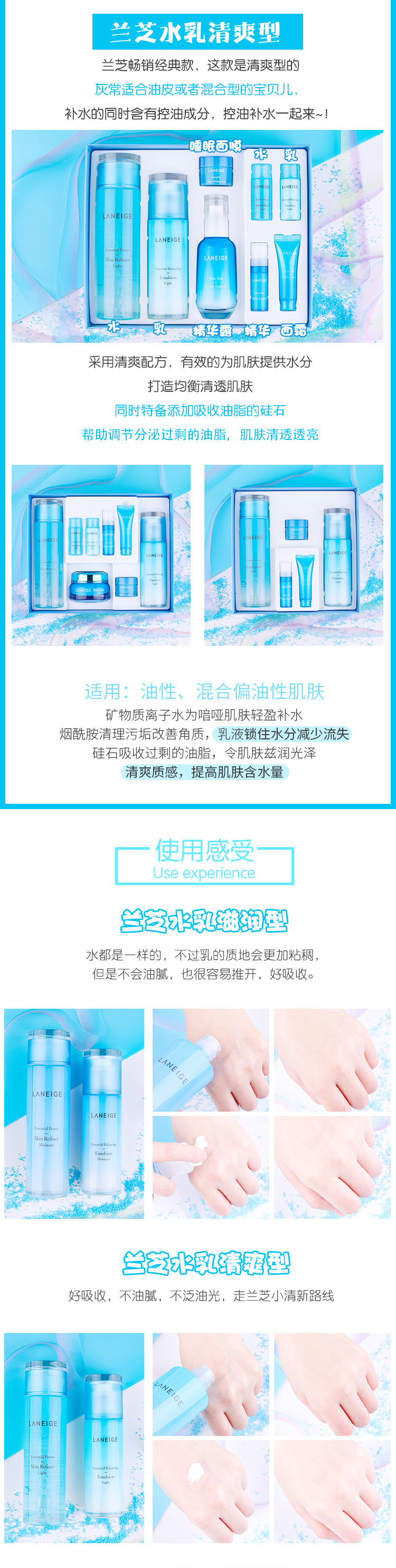 【中欧班列精选】 LANEIGE兰芝水乳套装 清爽滋润 爽肤水乳液面霜精华套盒正品保证 YLPY