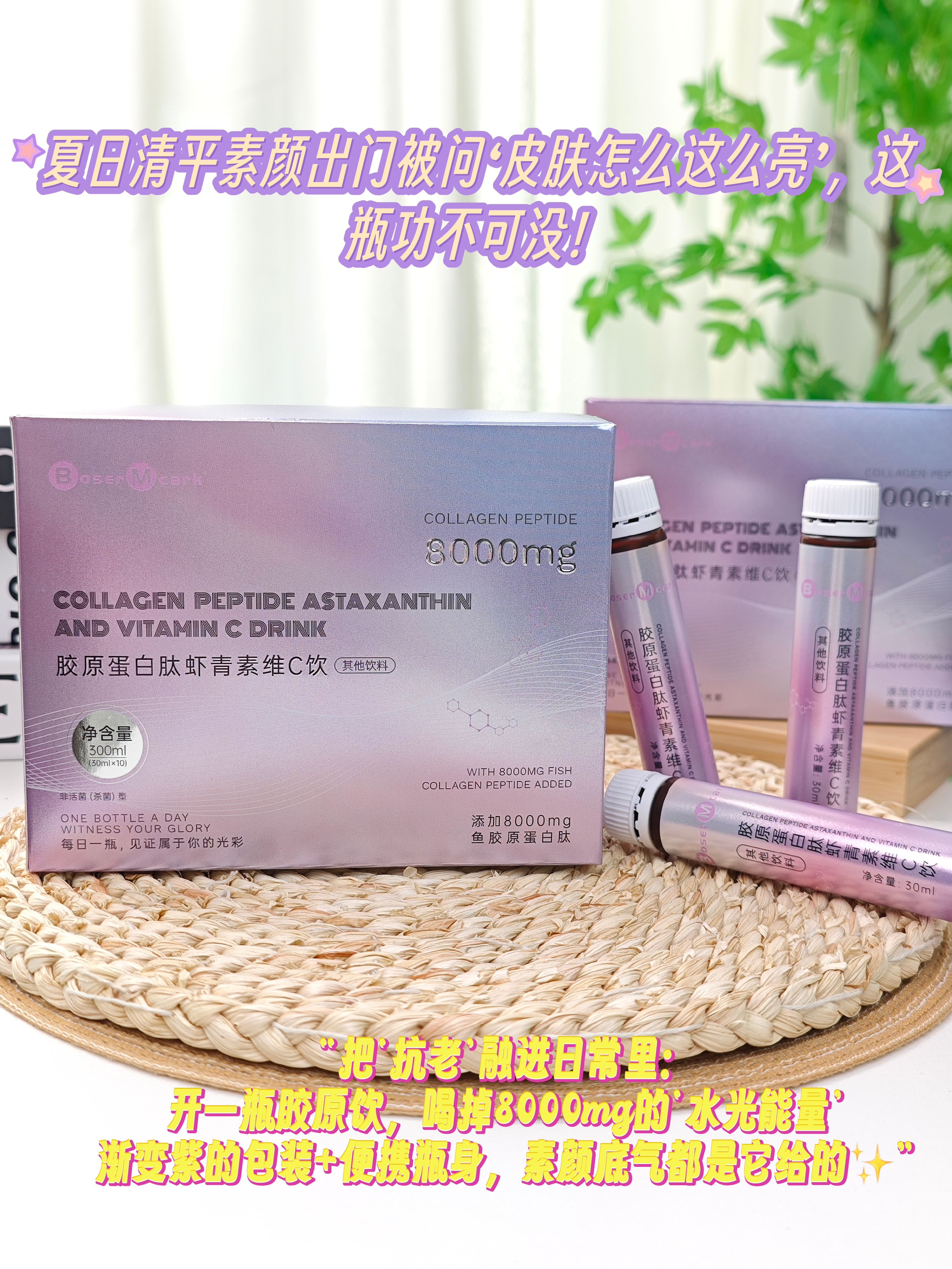 【产品名称】BoserMcark胶原蛋白肽虾青素维C饮