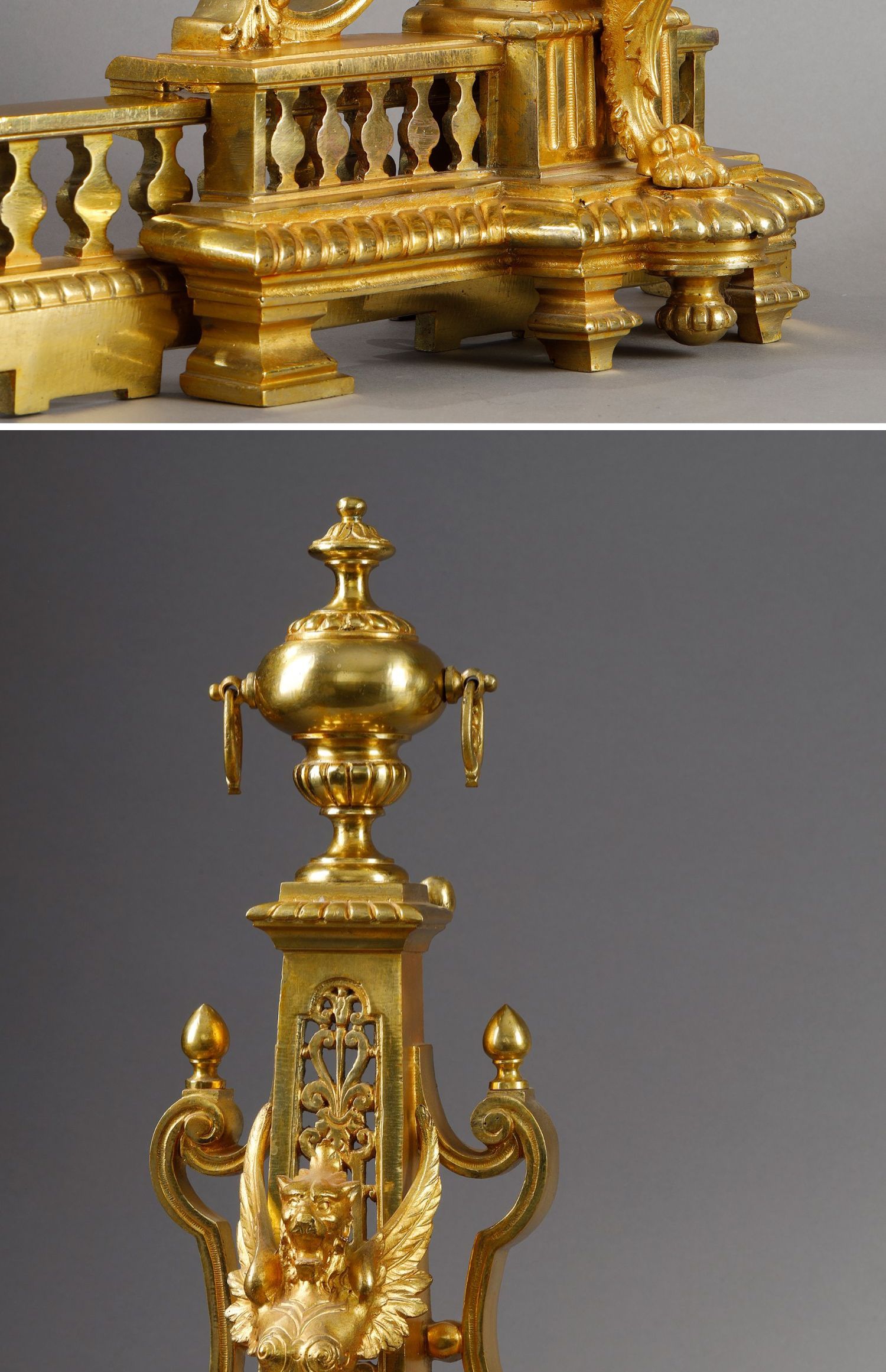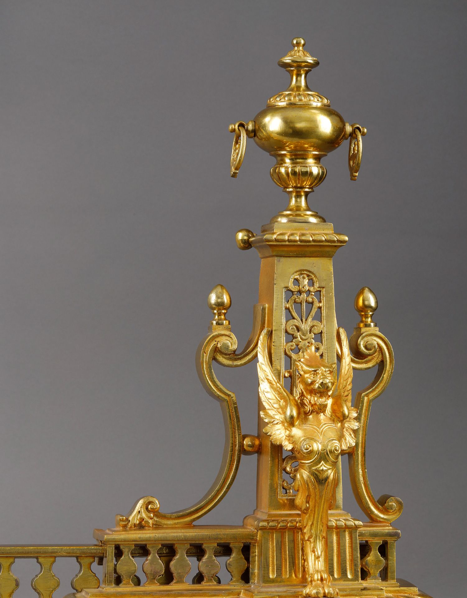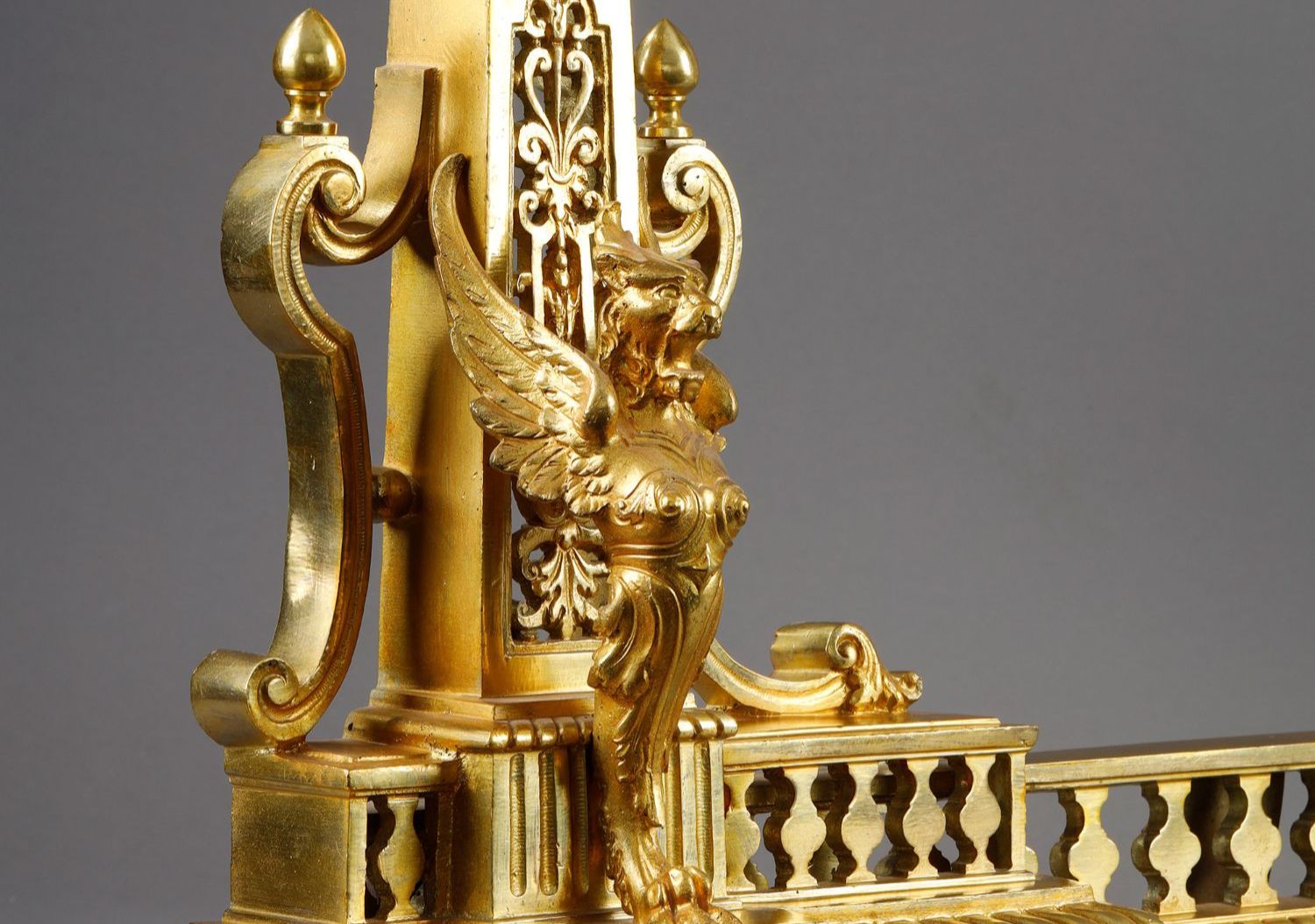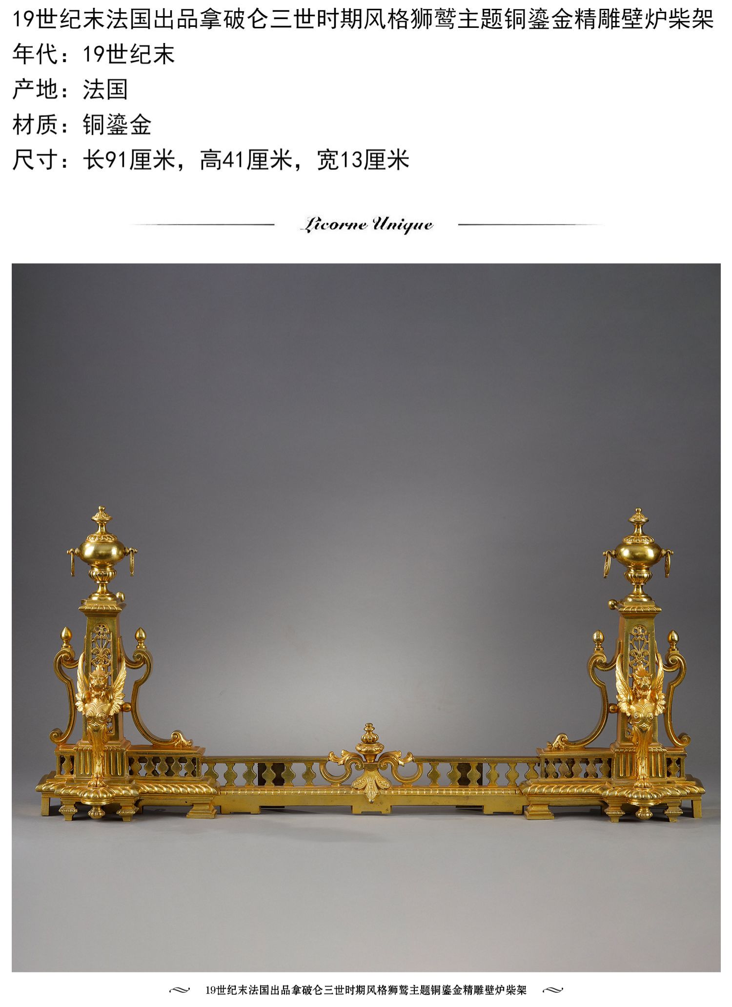 独角鹿西洋古董拿破仑三世时期风格狮鹫主题铜鎏金精雕壁炉柴架