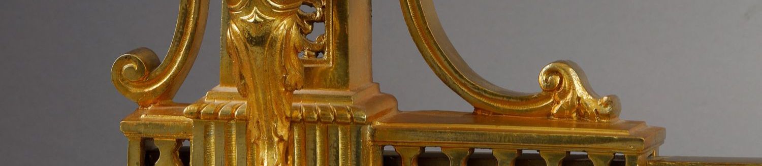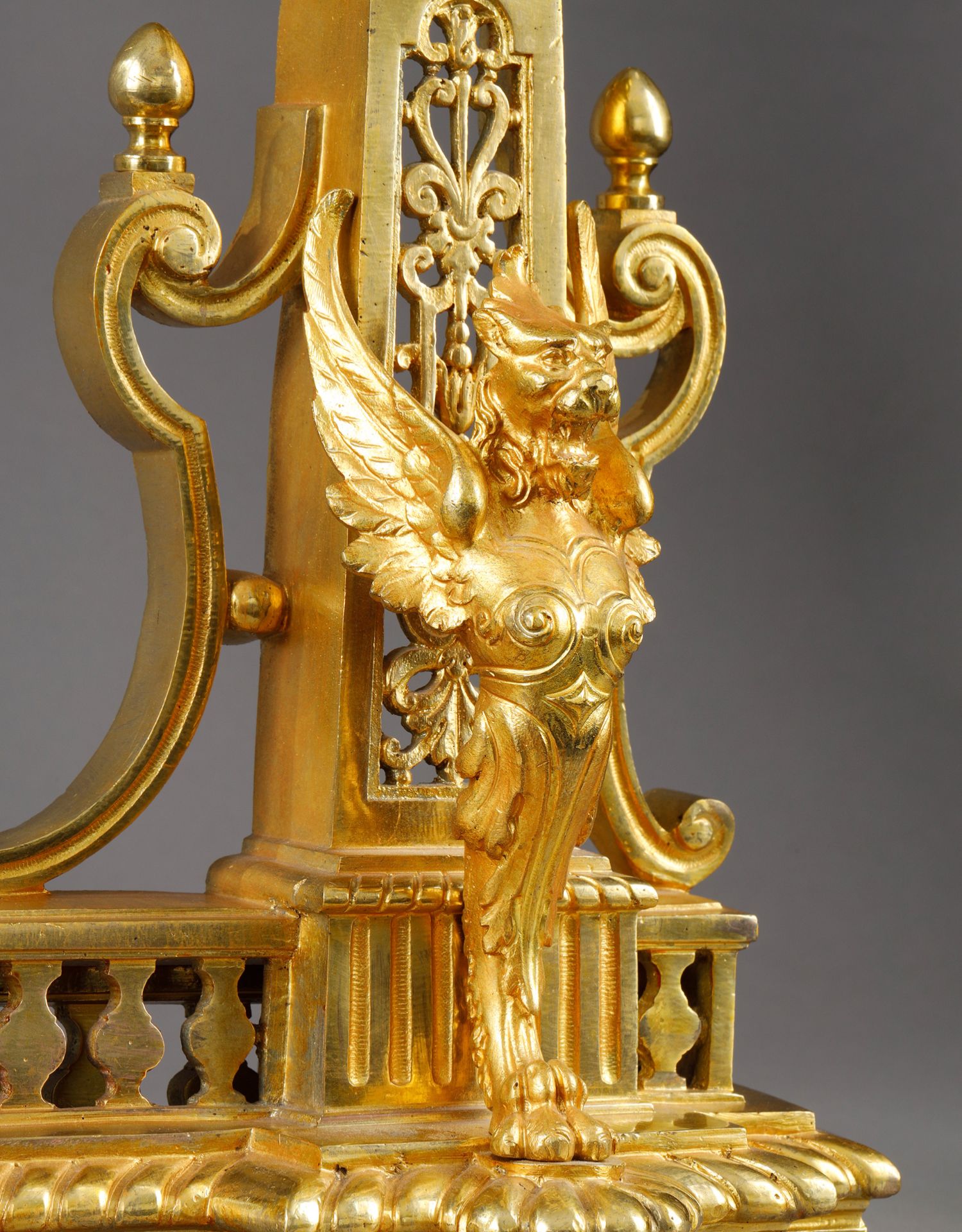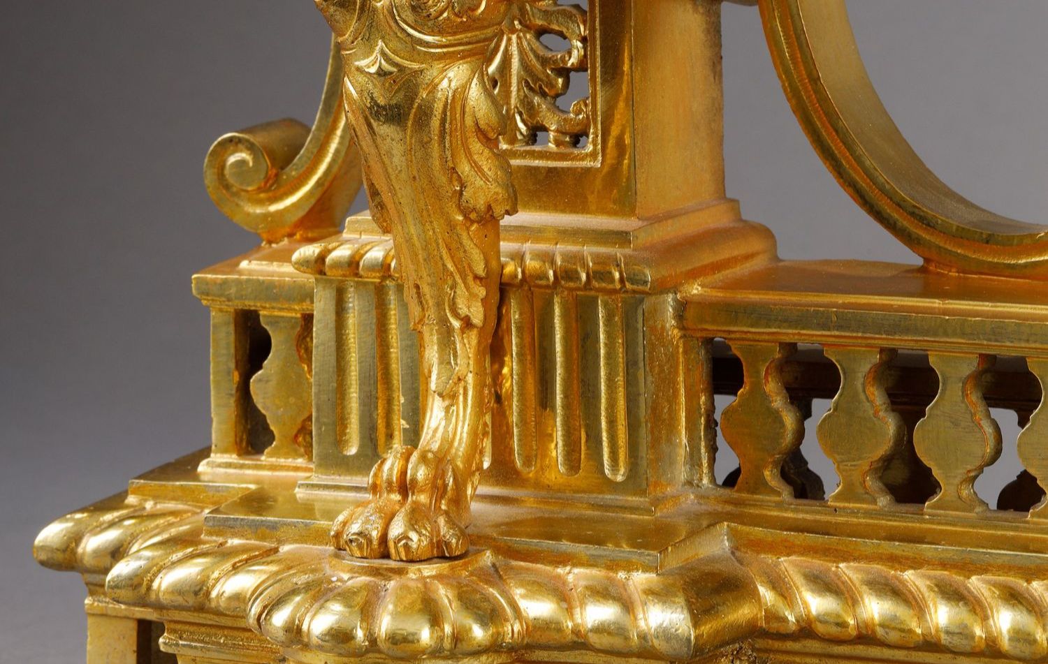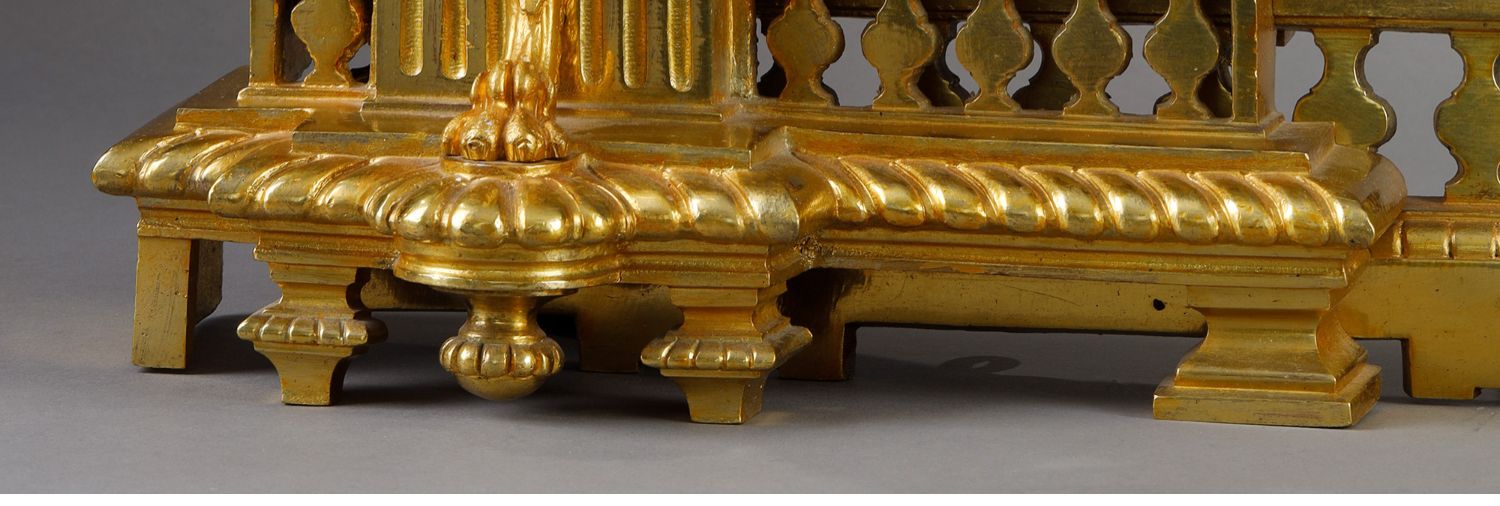 独角鹿西洋古董拿破仑三世时期风格狮鹫主题铜鎏金精雕壁炉柴架