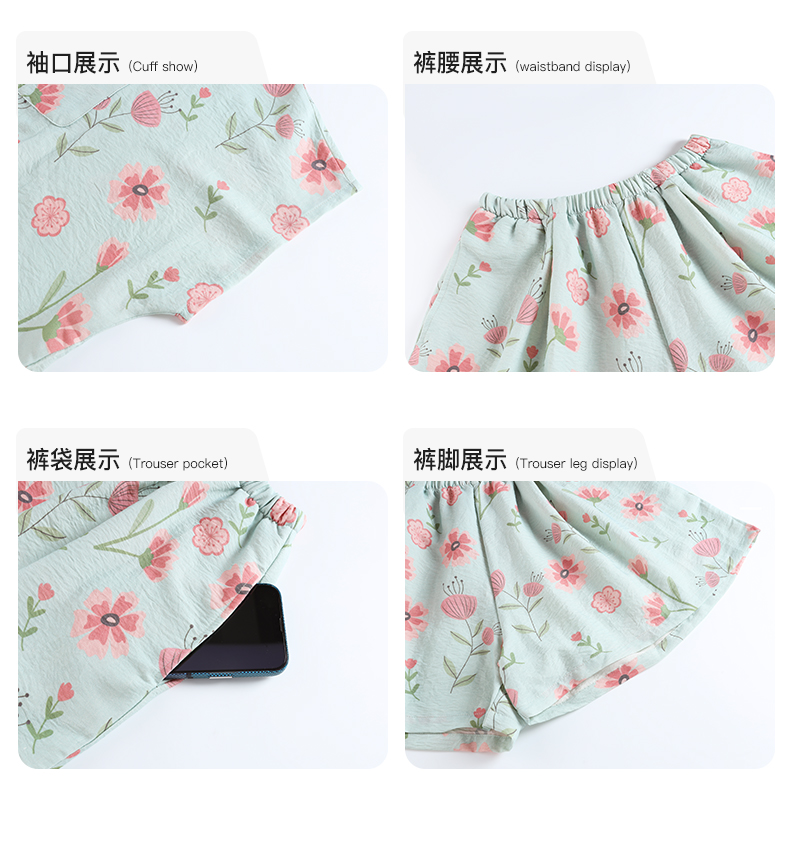可人儿夏季短袖睡衣女士夏天薄款全棉短裤少女大码家居服套装