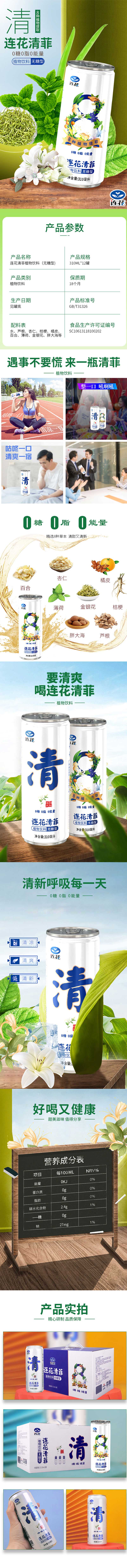 以岭莲花清菲植物饮料(无糖型)310mlx24罐/箱