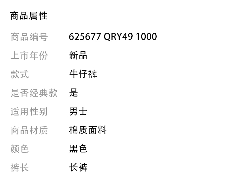 ALEXANDER MCQUEEN 亚历山大·麦昆 男士棉质黑色牛仔裤 625677 QRY49 1000