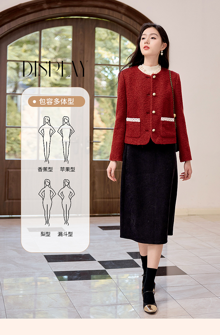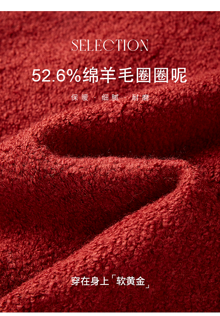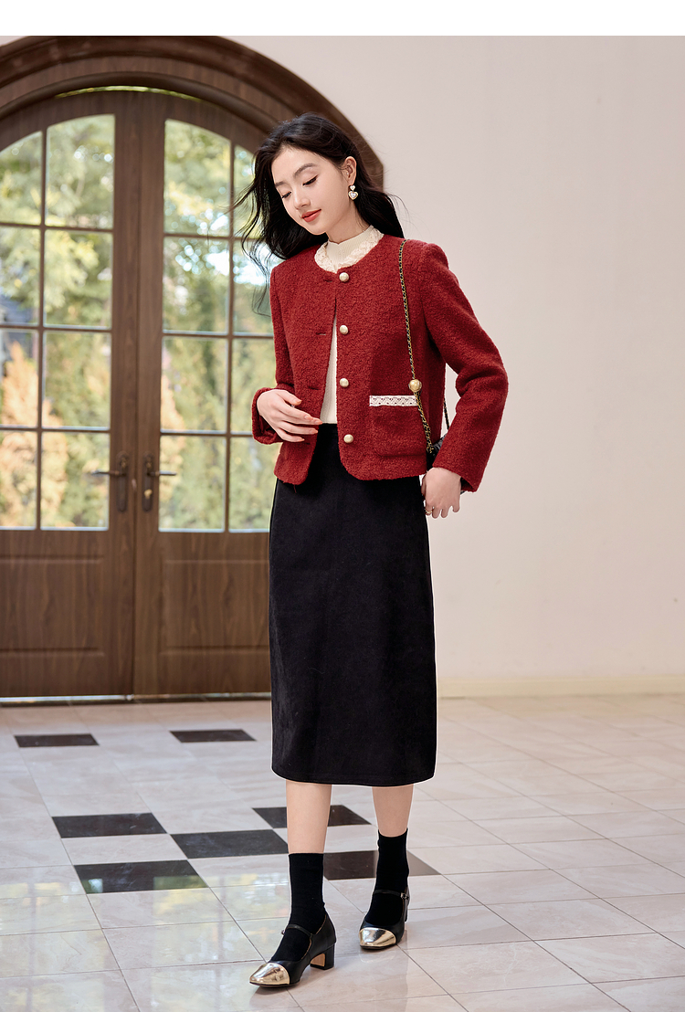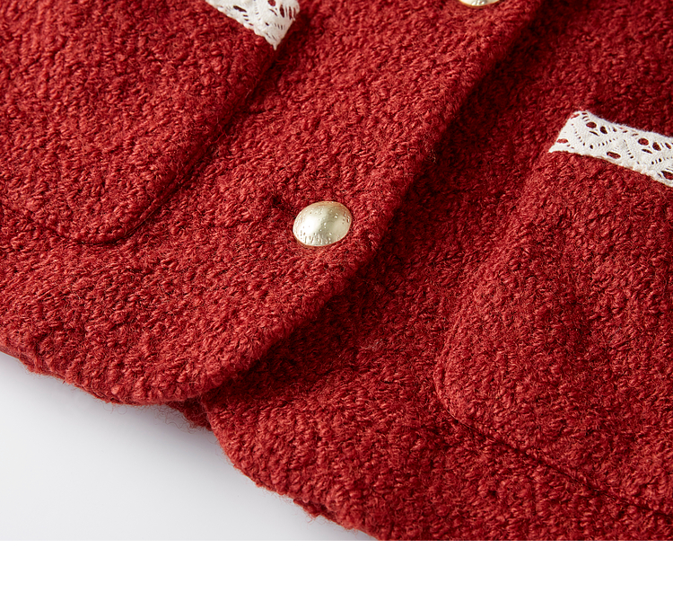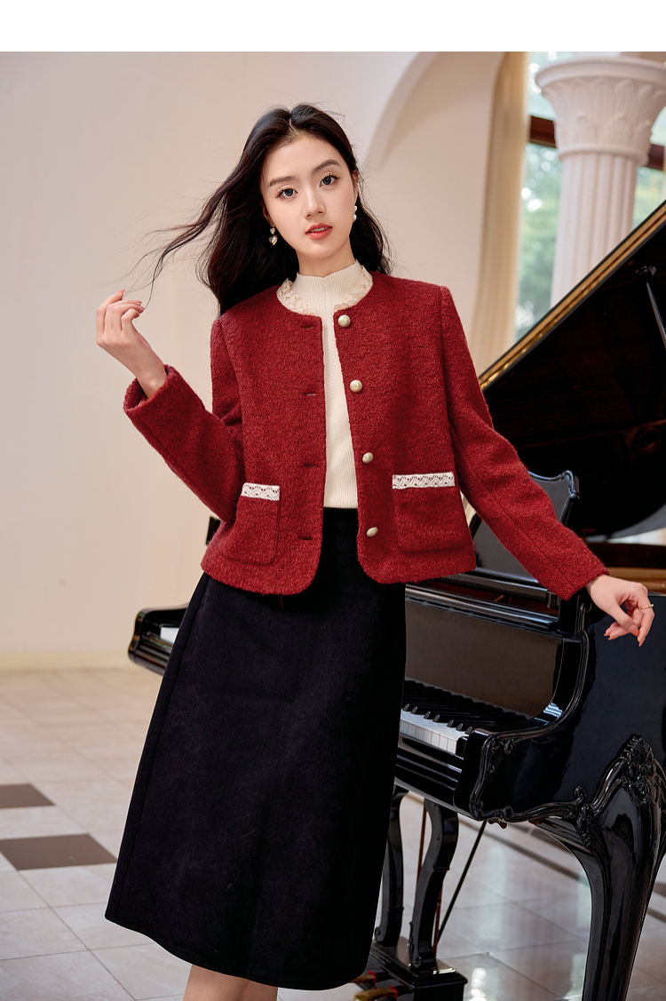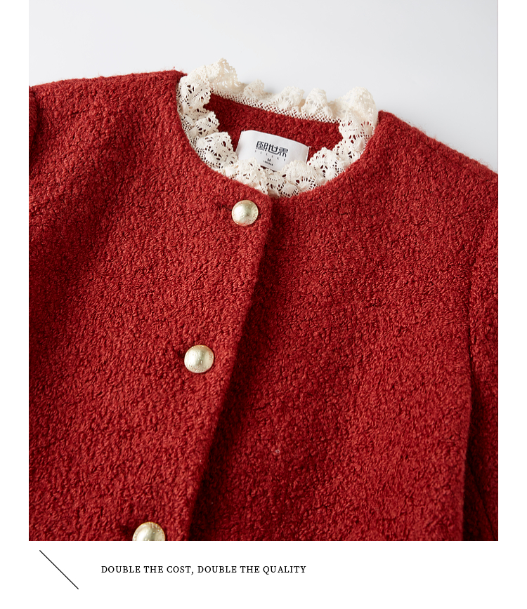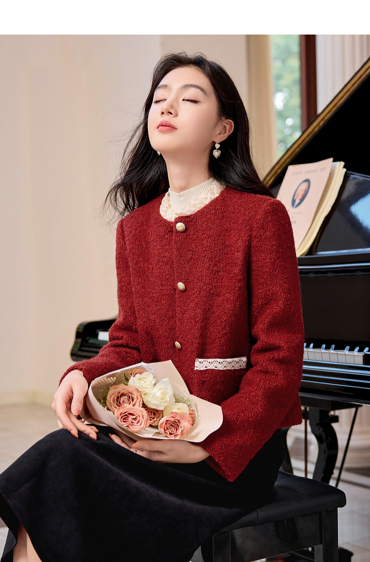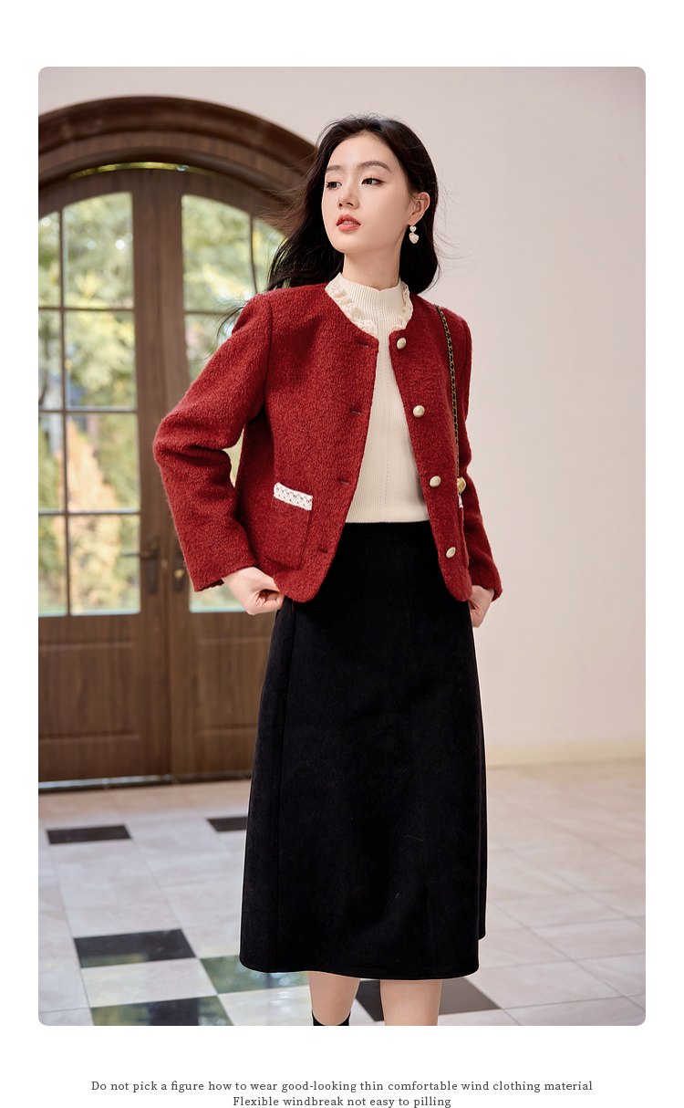 【年终特卖】熙世界*红色羊毛呢外套女短款软糯小香风呢子上衣2025秋冬新款