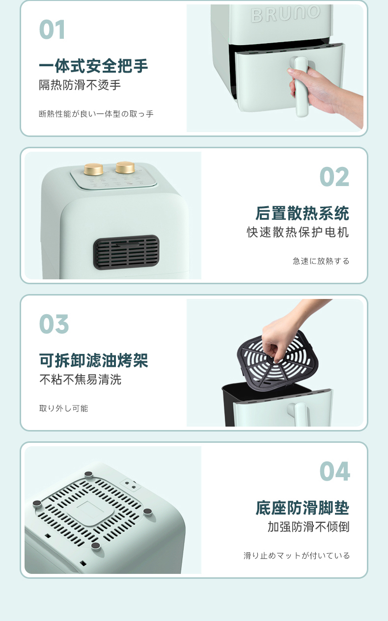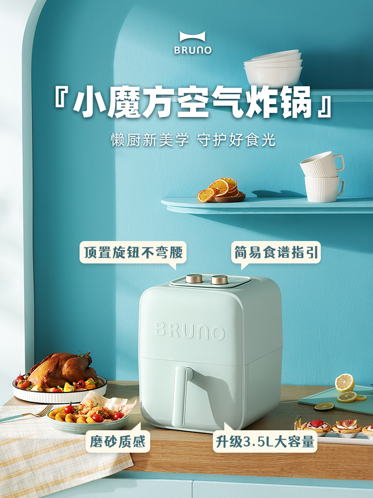 日本BRUNO小魔方空气炸锅新款家用多功能全自动空气电炸锅大容量