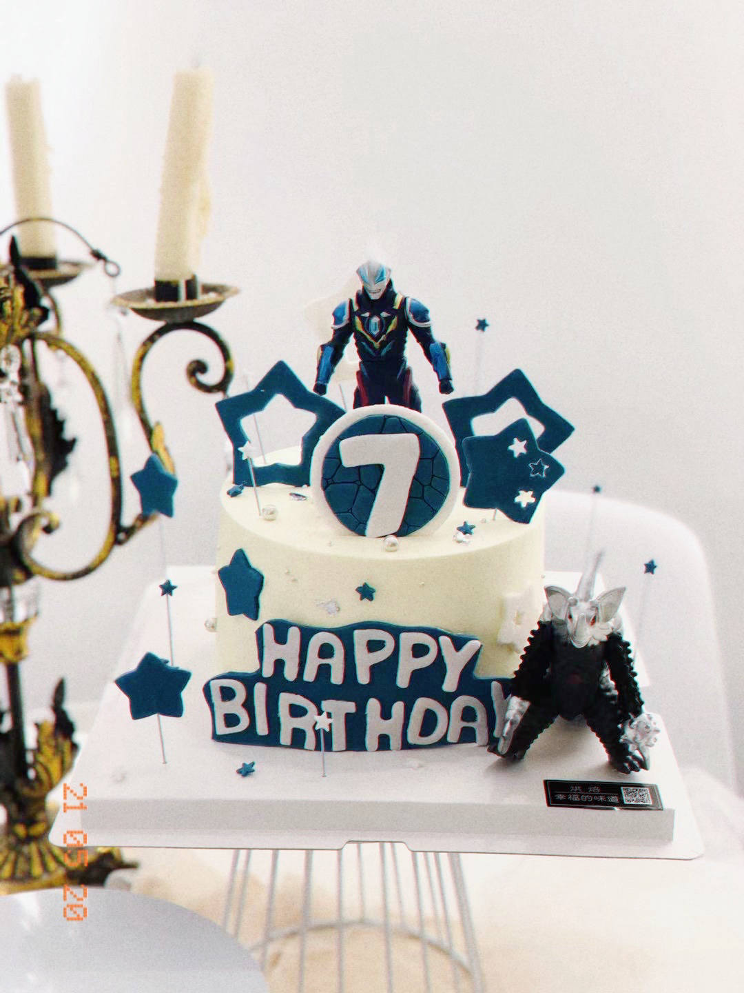 奥特曼蛋糕,卡片上奥特曼眼镜可拿下来做面具,部分零星装饰,有少量调整,提前24小时以上下单