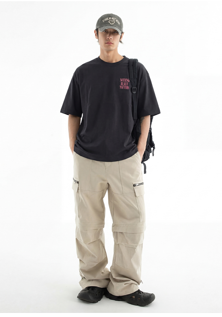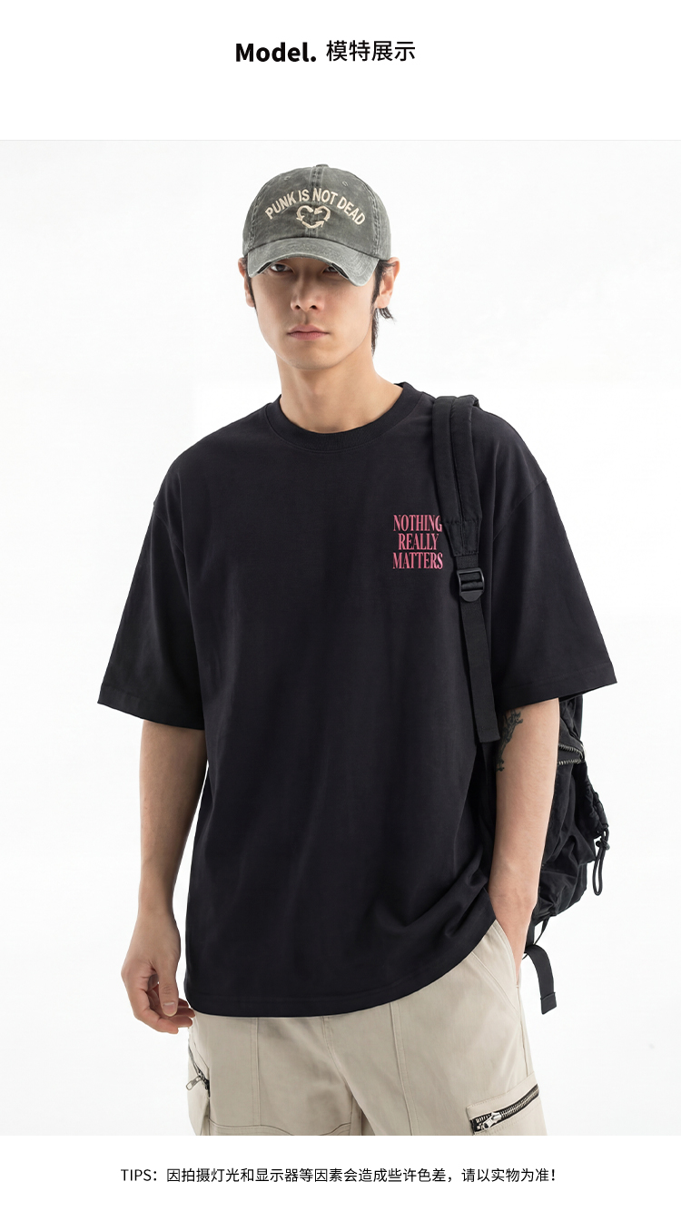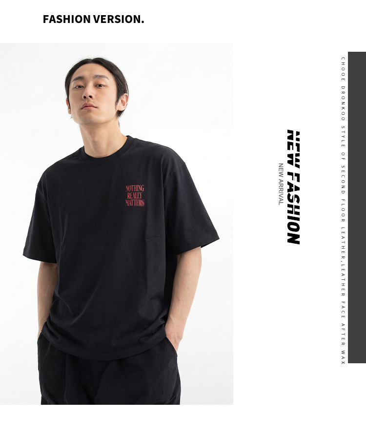 DRONKOO 2026 圆领左胸绣线字母喷色后幅喷色三排字母微阔短袖T恤