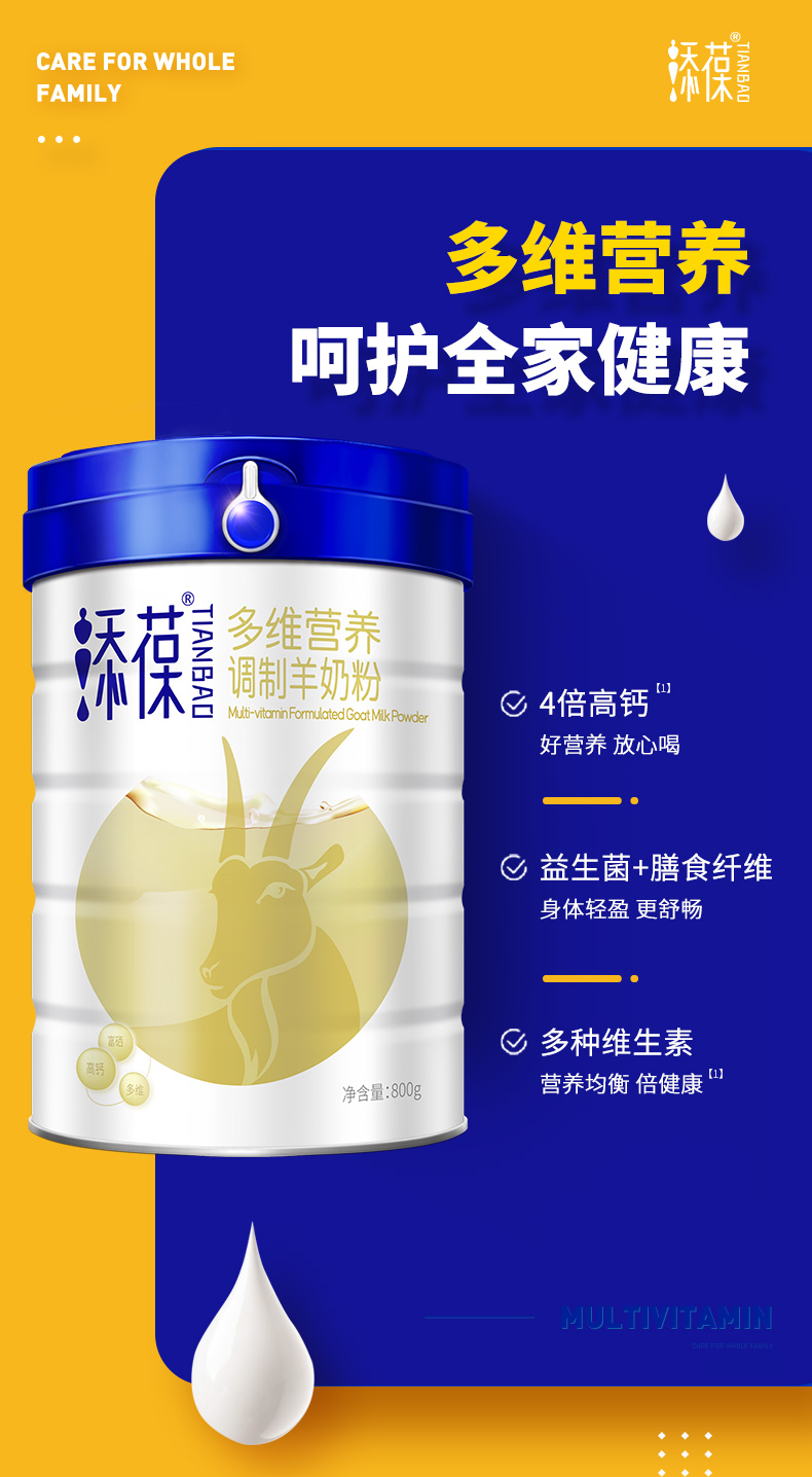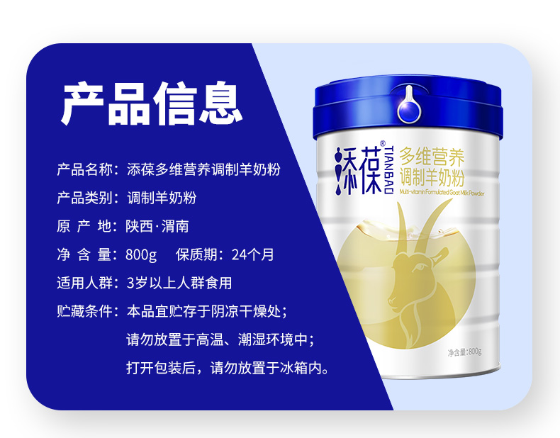 新国标添葆多维营养羊奶粉成人中老年高钙富硒奶粉800g