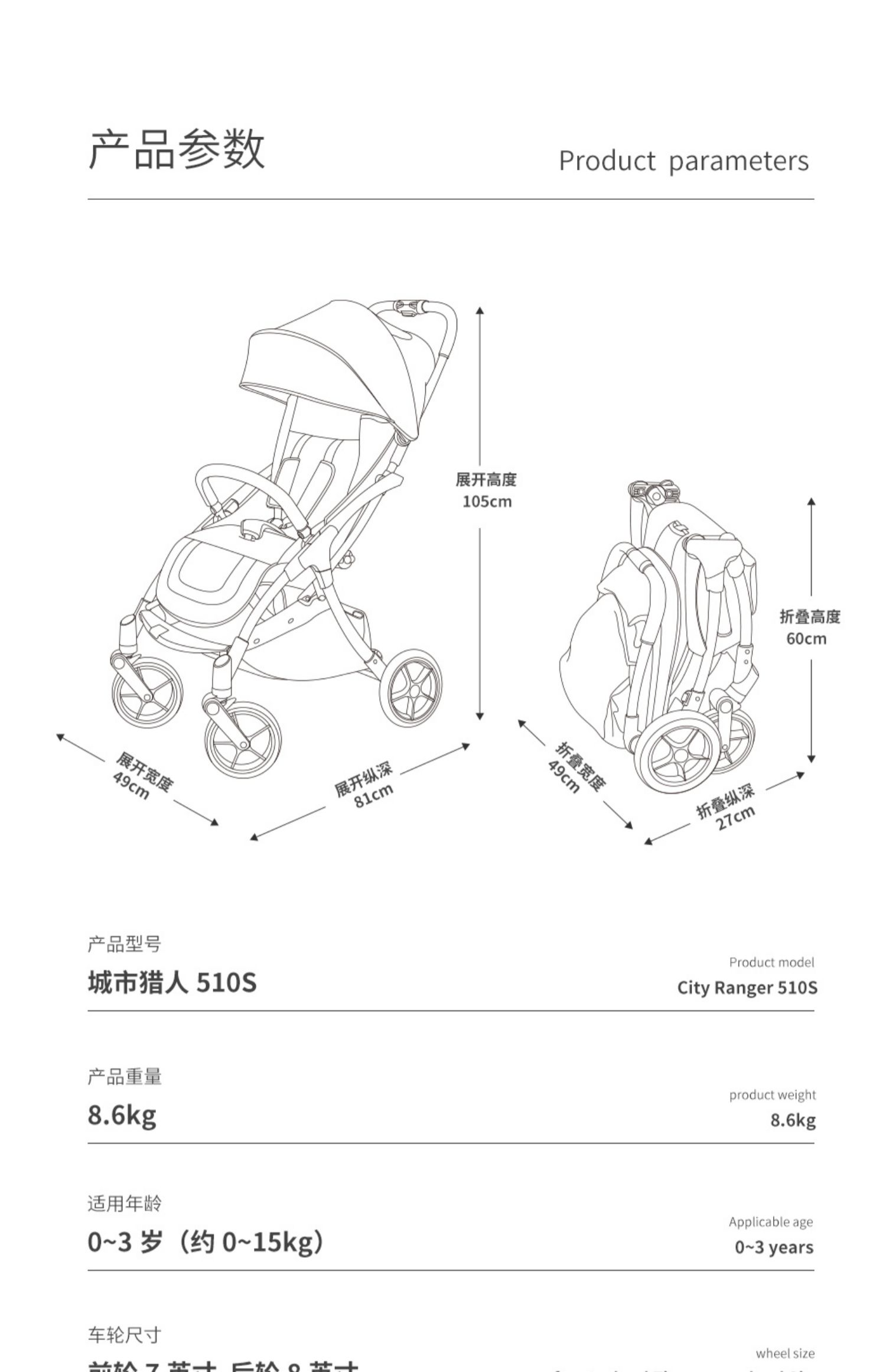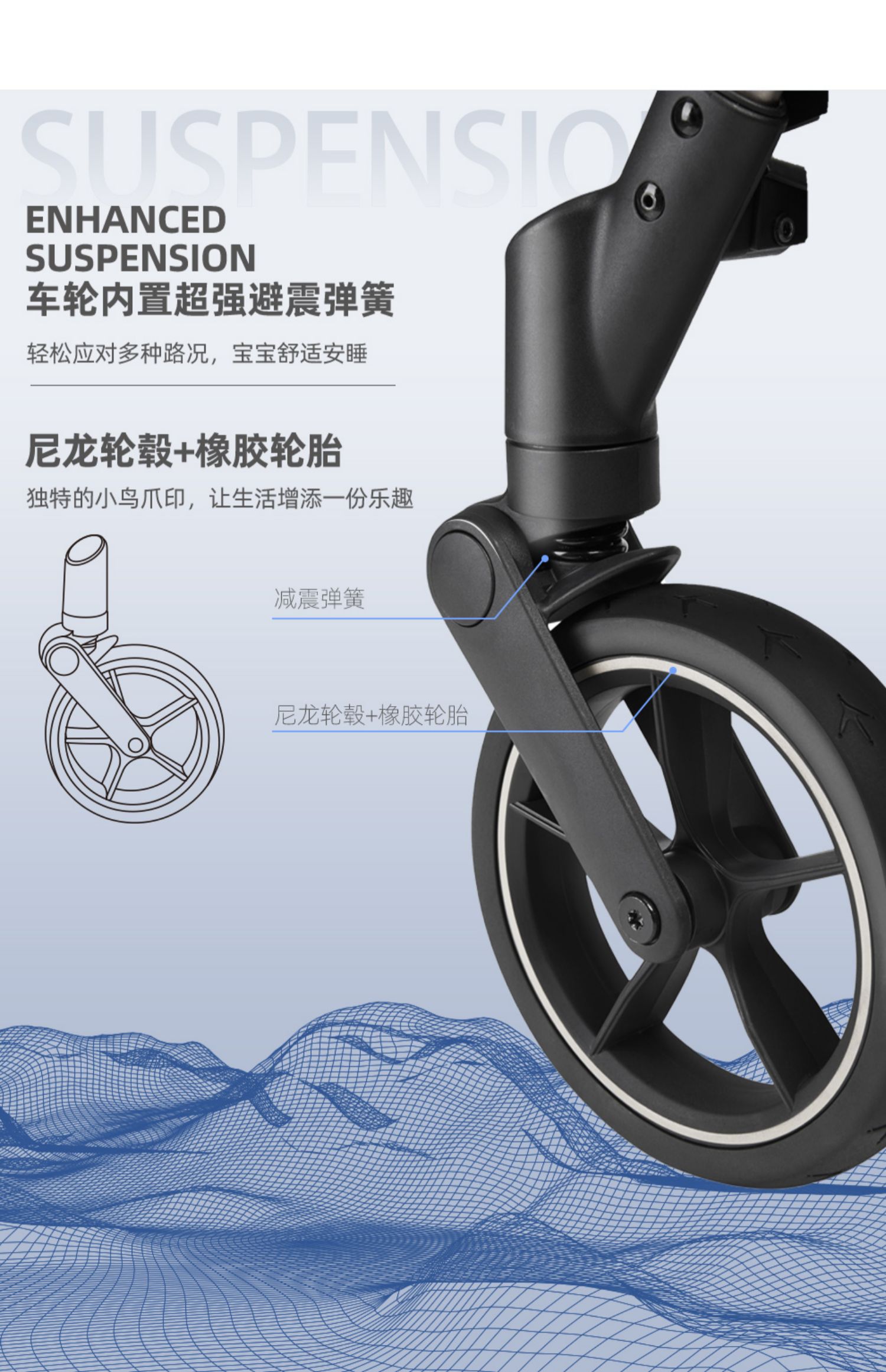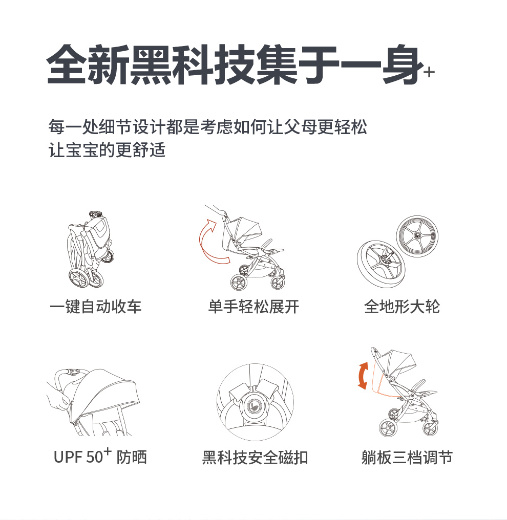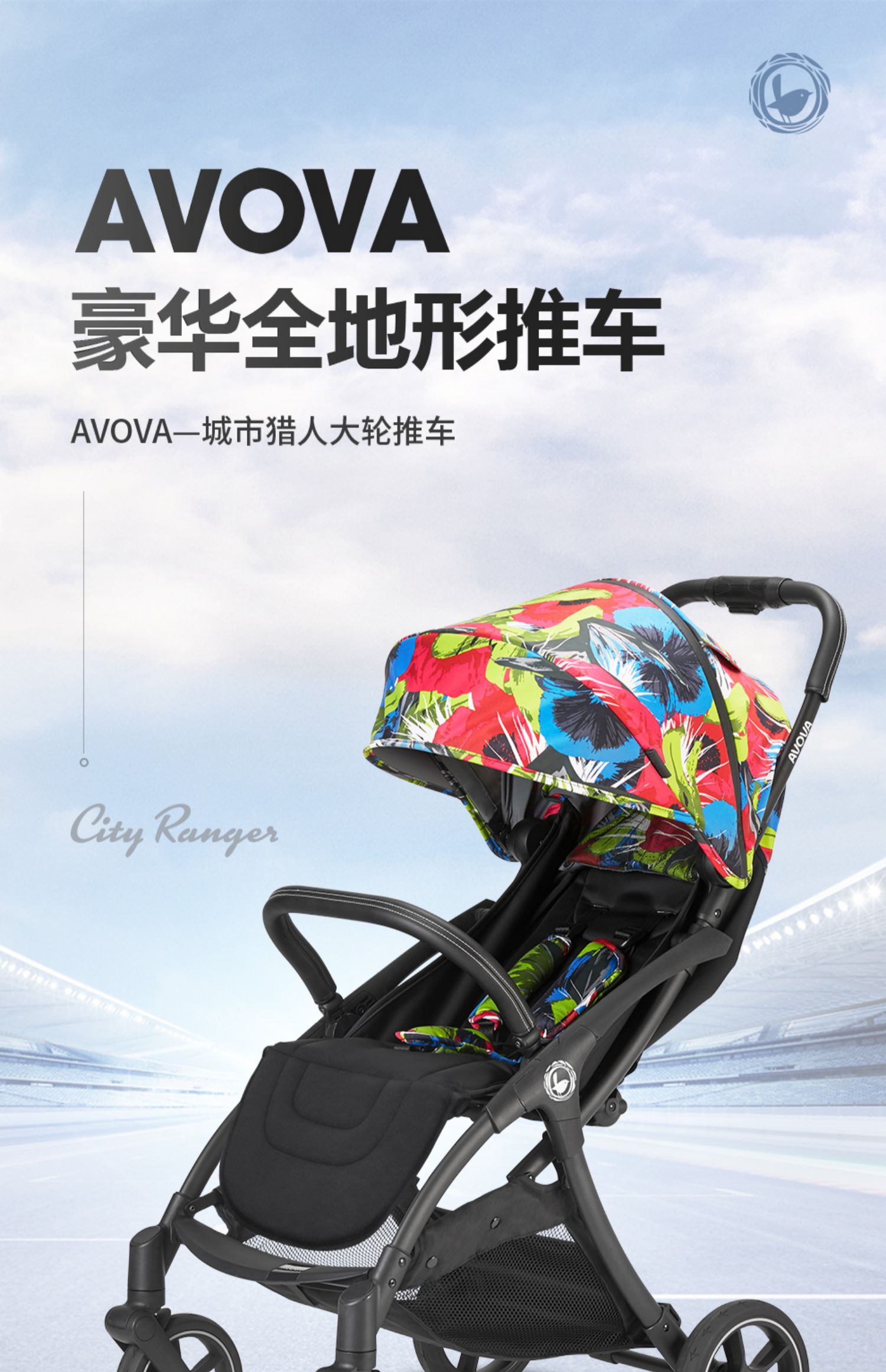 AVOVA婴儿推车可坐可躺一键折叠高景观全地形宝宝推车城市猎人