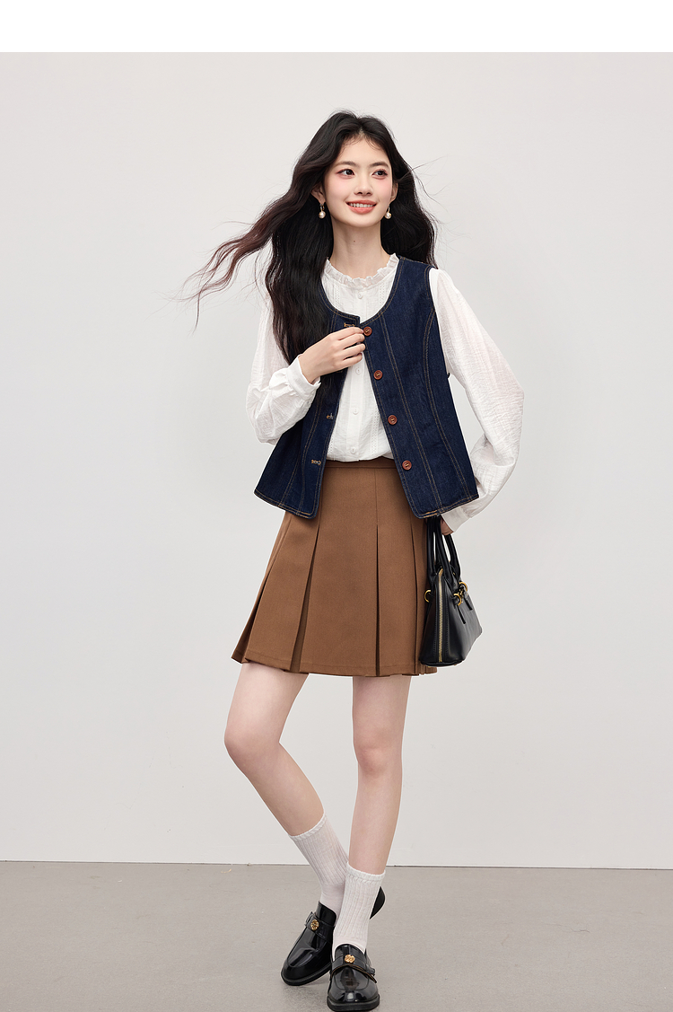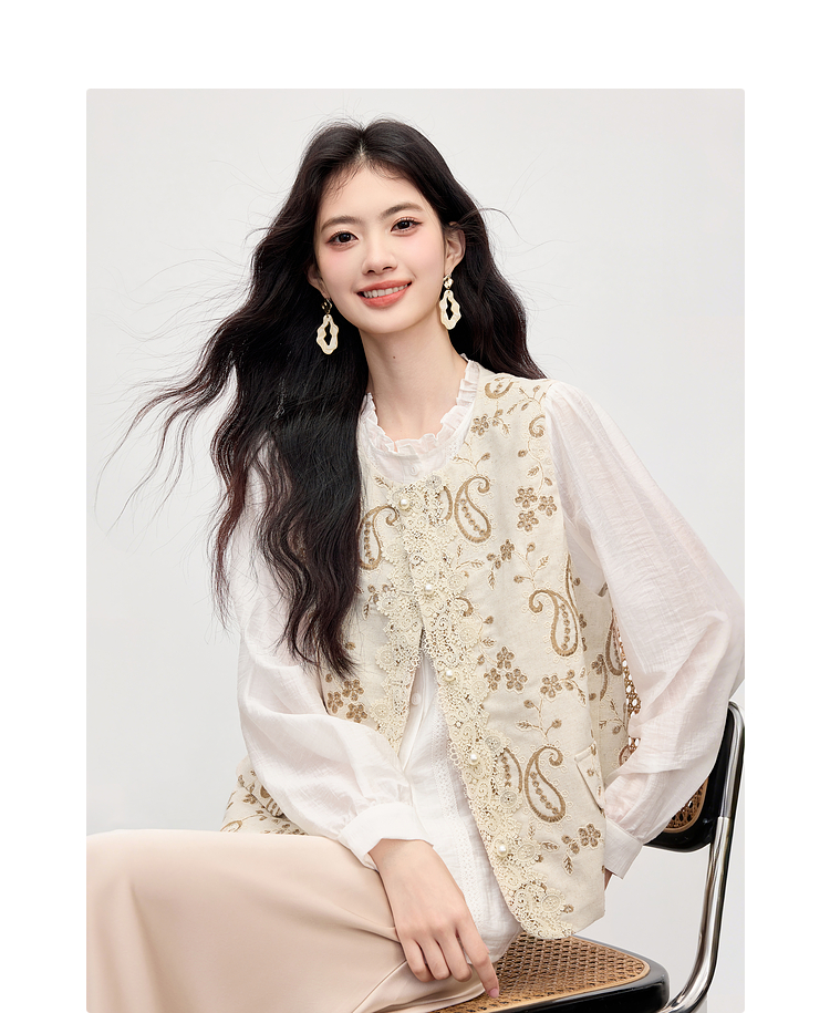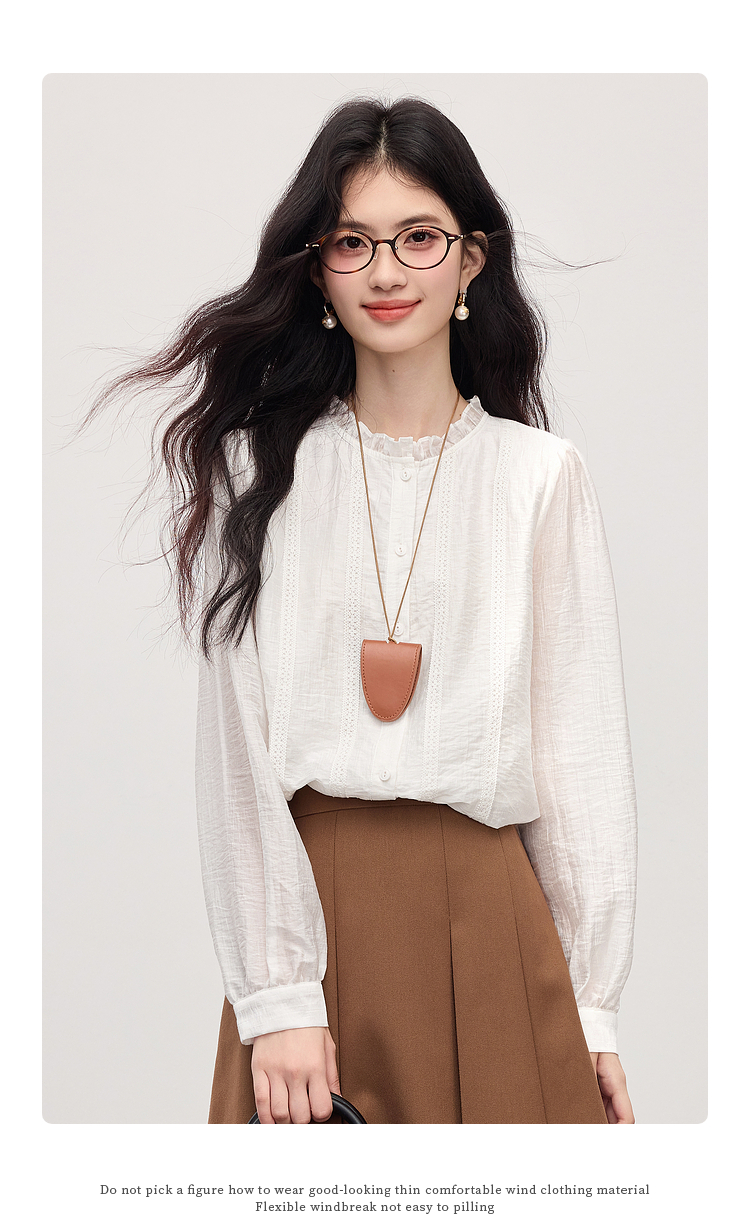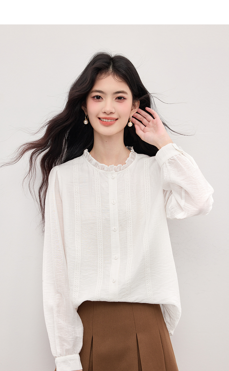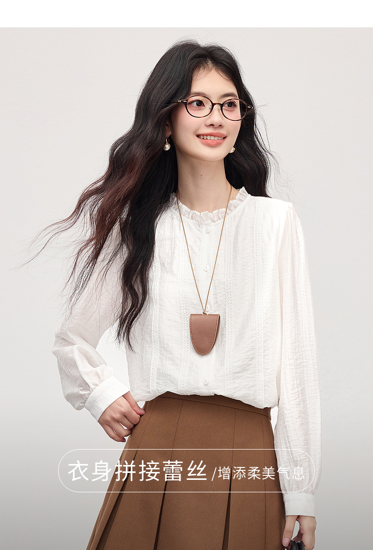 【09/03新品】熙世界莱赛尔天丝白色衬衫女2025秋日新款优雅气质长袖荷叶领上衣