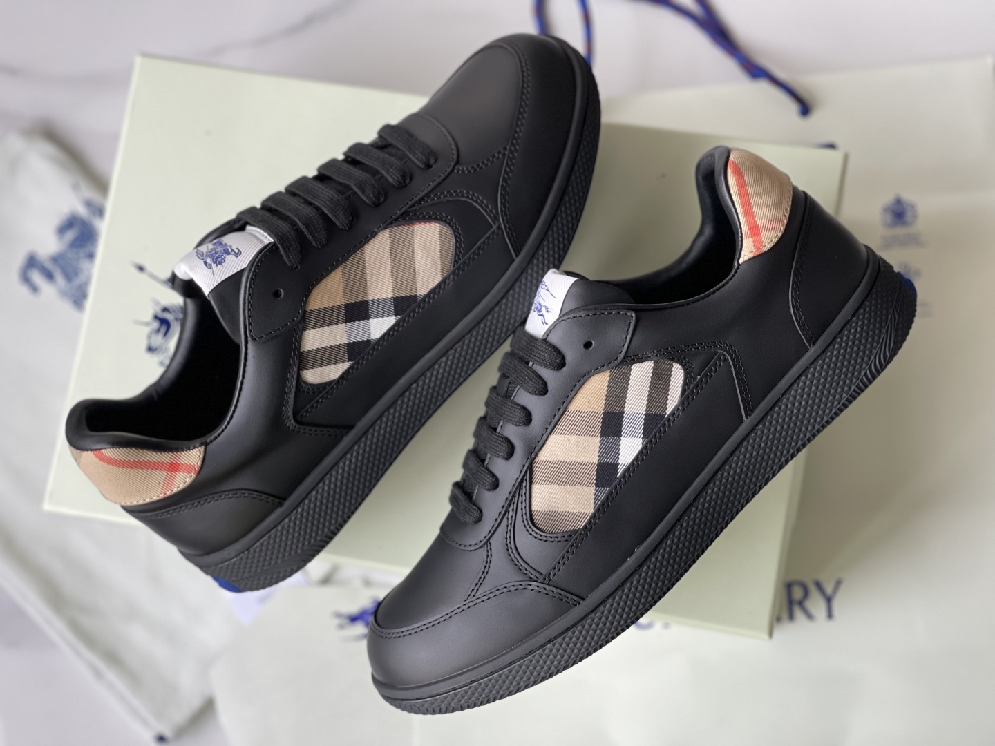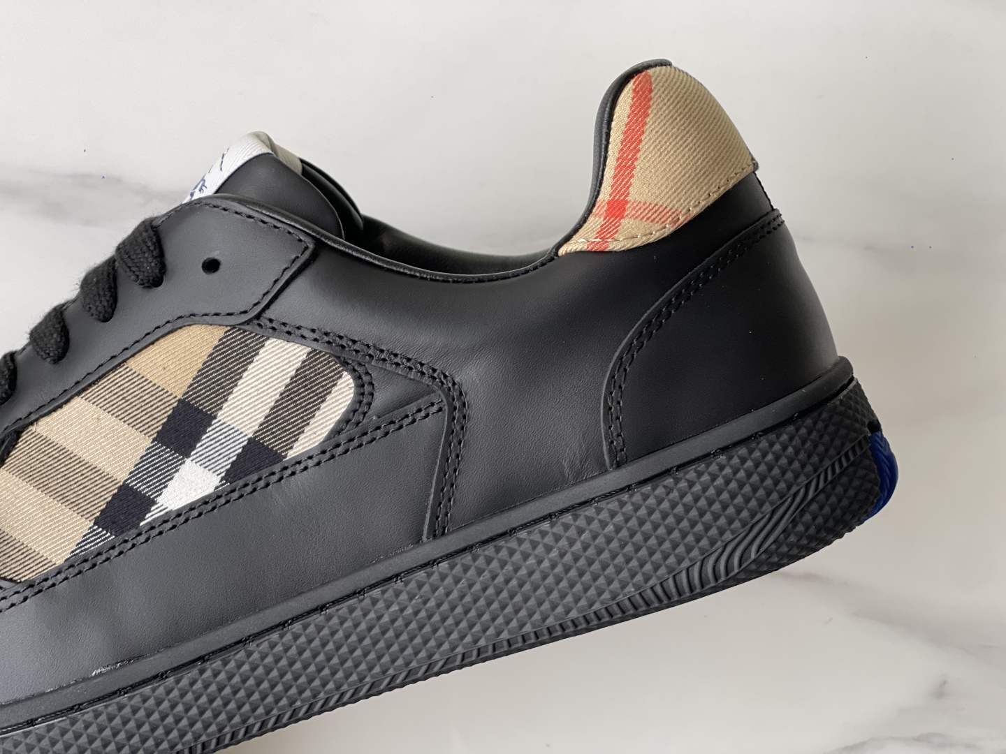 Burberry博柏利Terrace 系带圆头低帮板鞋 情侣款 选用光滑小牛皮材质打造。于意大利工坊精制而成,搭配对比感鞋口和侧面Burberry格纹精纺裁片 不止于经典格纹,更深藏皮革奢华