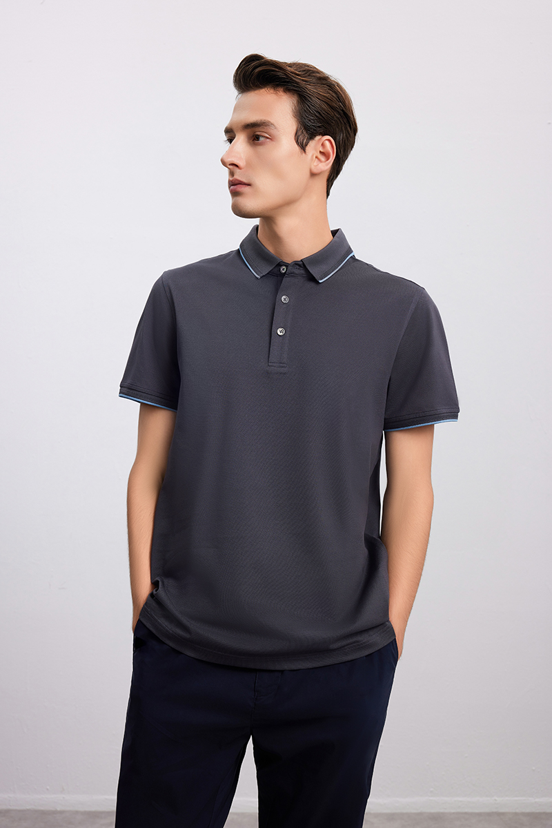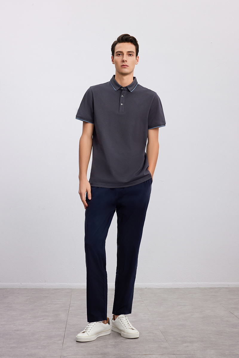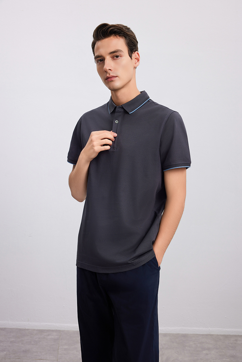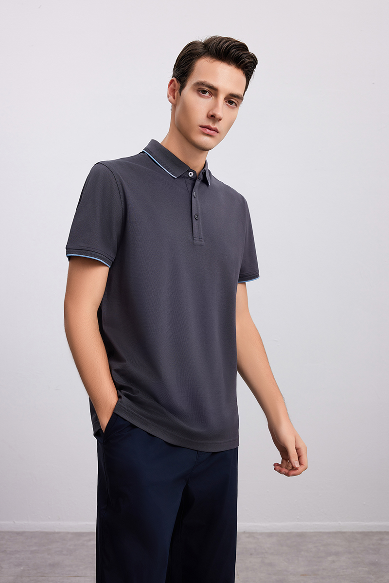 【棉+桑蚕丝 男士Polo衫】24年春夏新品男士条纹撞色纯色百搭短袖上衣