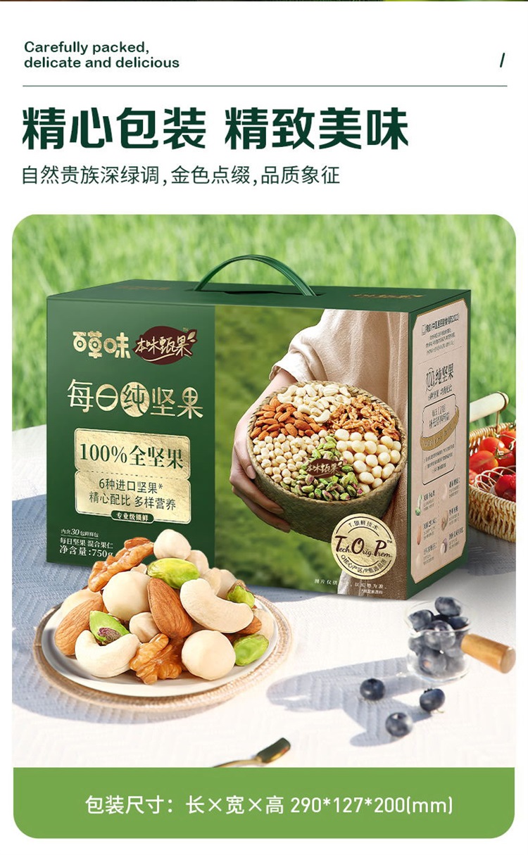 【包邮】本味甄果-每日纯坚果混合果仁750g 礼盒干果小包装零食称心有面健康好礼