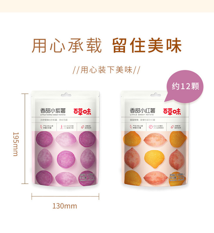 ※买一送一!香甜小薯干 紫薯&红薯条 软地瓜 番薯 办公室休闲 零食小吃 百草味108g