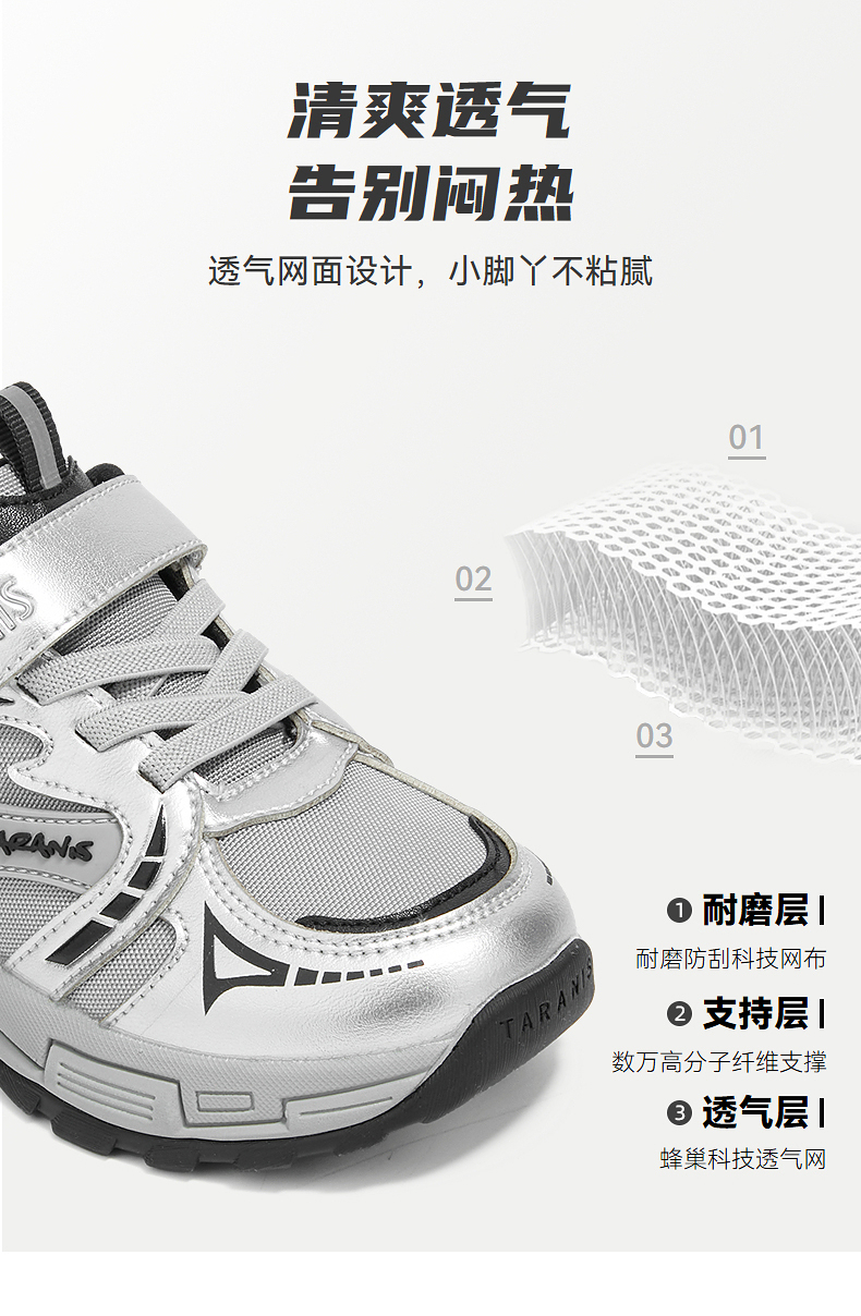 泰兰尼斯25年秋季新品户外休闲鞋透气轻便防滑网面男女童运动鞋 T01X5C6714