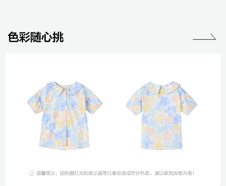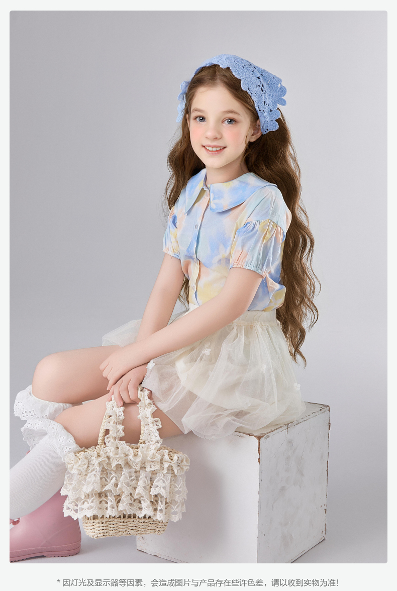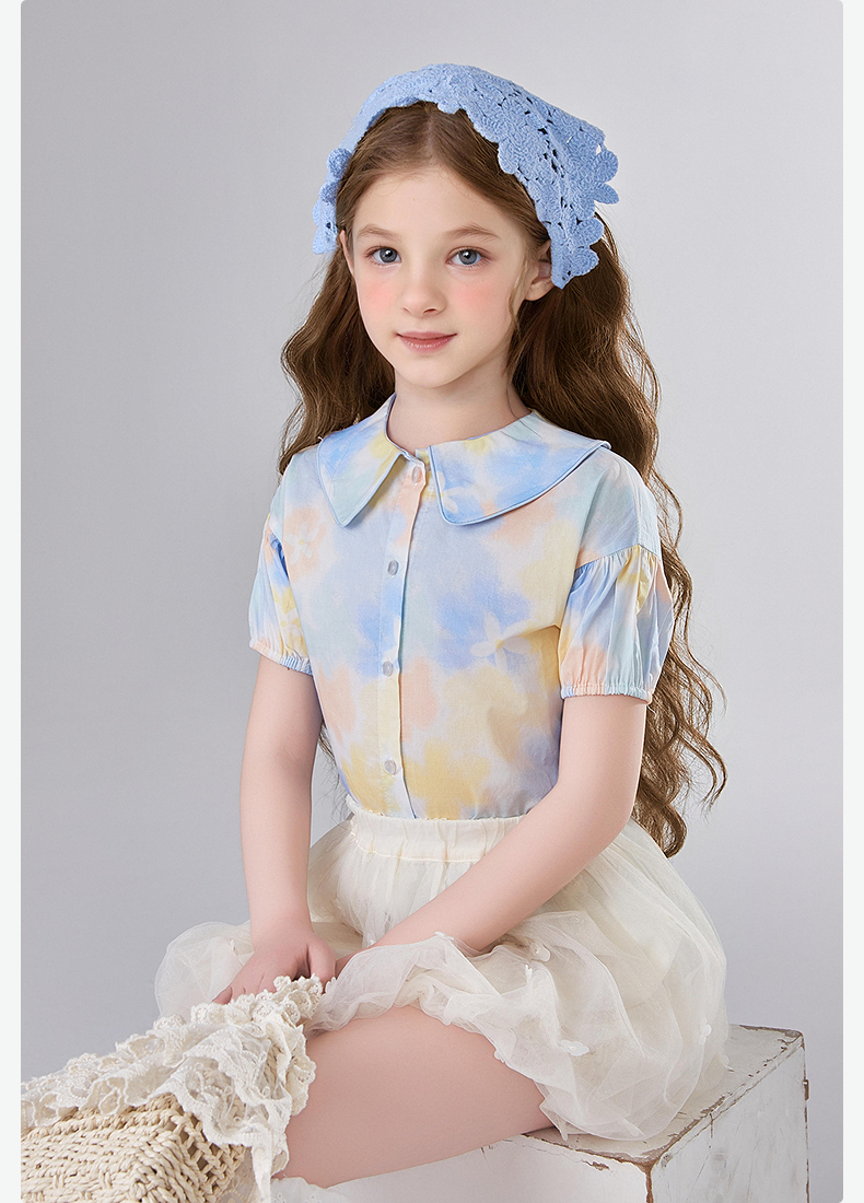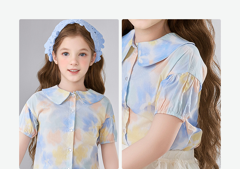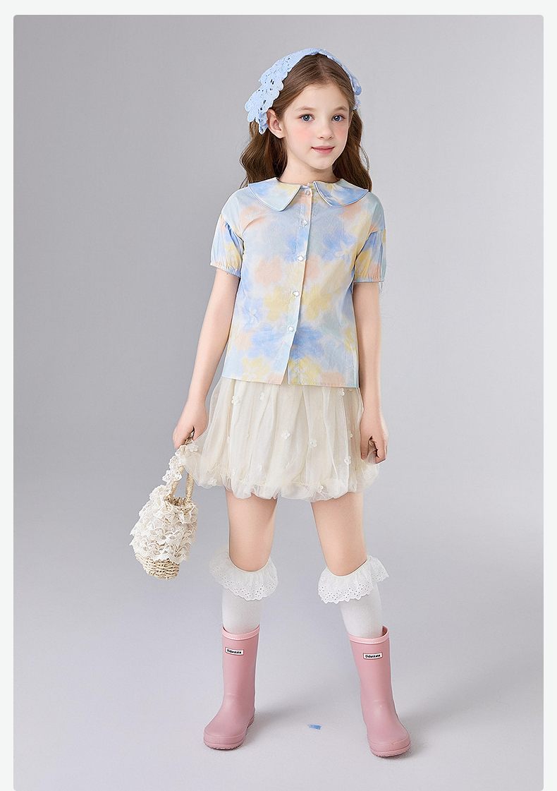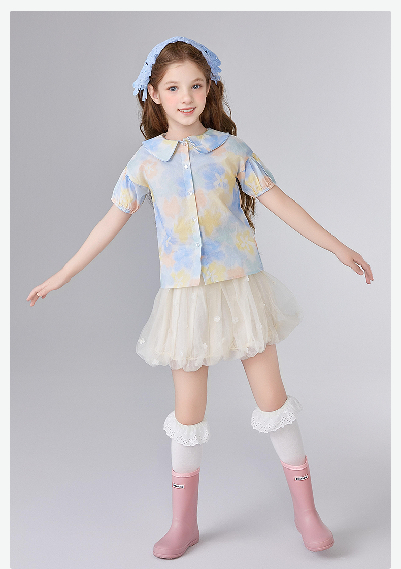 笛莎Deesha 童装女童衬衫2025夏新款女童甜美印花衬衫
