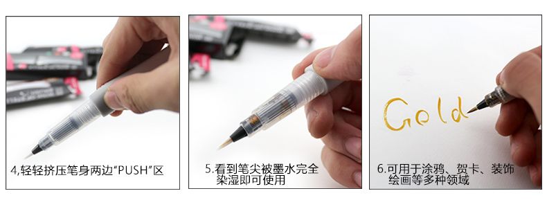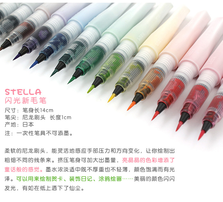 日本进口kuretake吴竹STELLA闪烁笔金粉彩色软头笔闪光毛笔