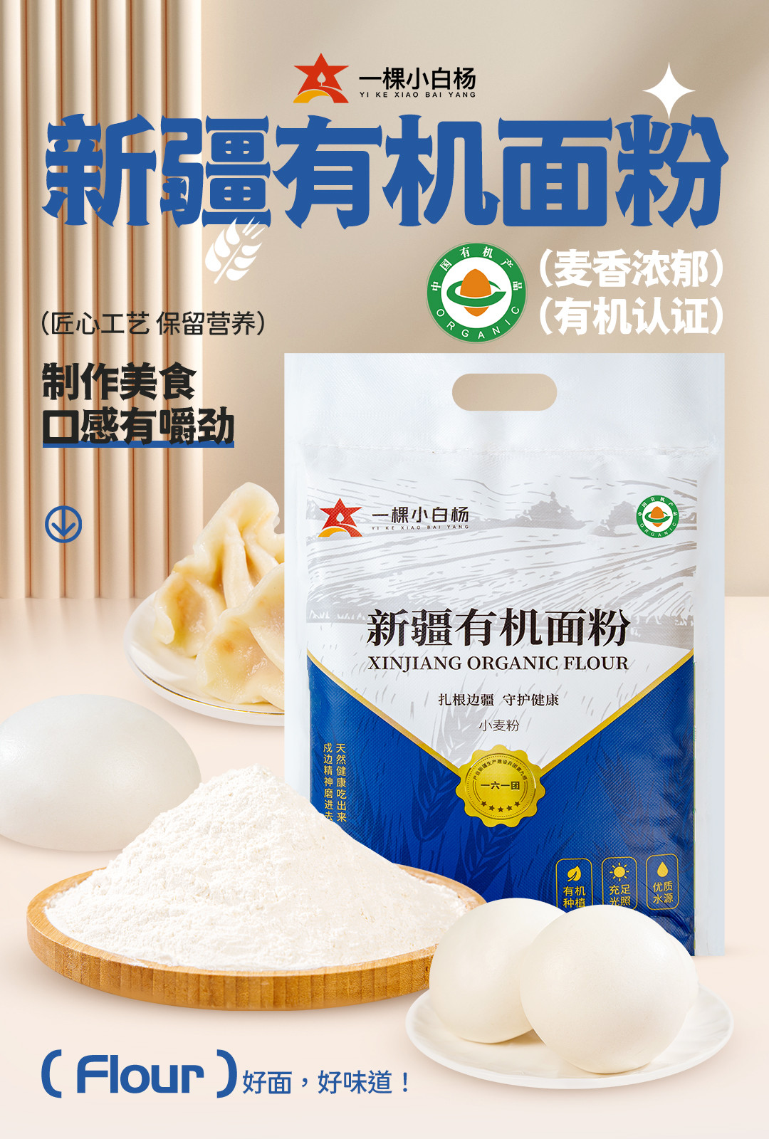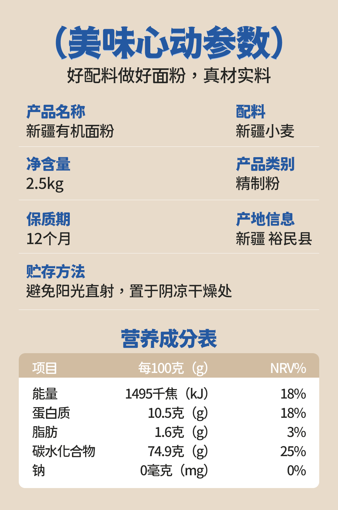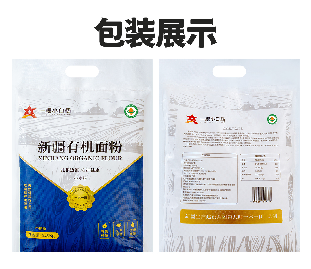 【新疆有机面粉】 裕民县的黄金产区 新疆生产建设兵团监制 精制慢磨工艺 易成团不粘手 麦香浓郁
