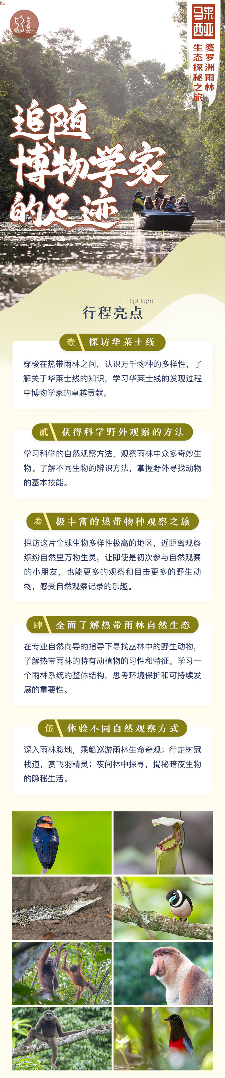 长鼻猴、东婆罗洲灰长臂猿、马来犀鸟等物种