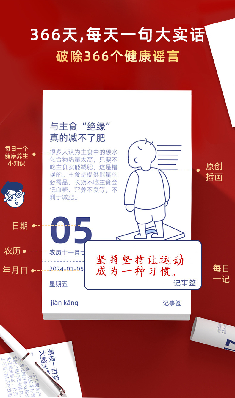 2025年【新款龙年养生台历 365个健康小知识】健康台历摆件 个性创意励志语录