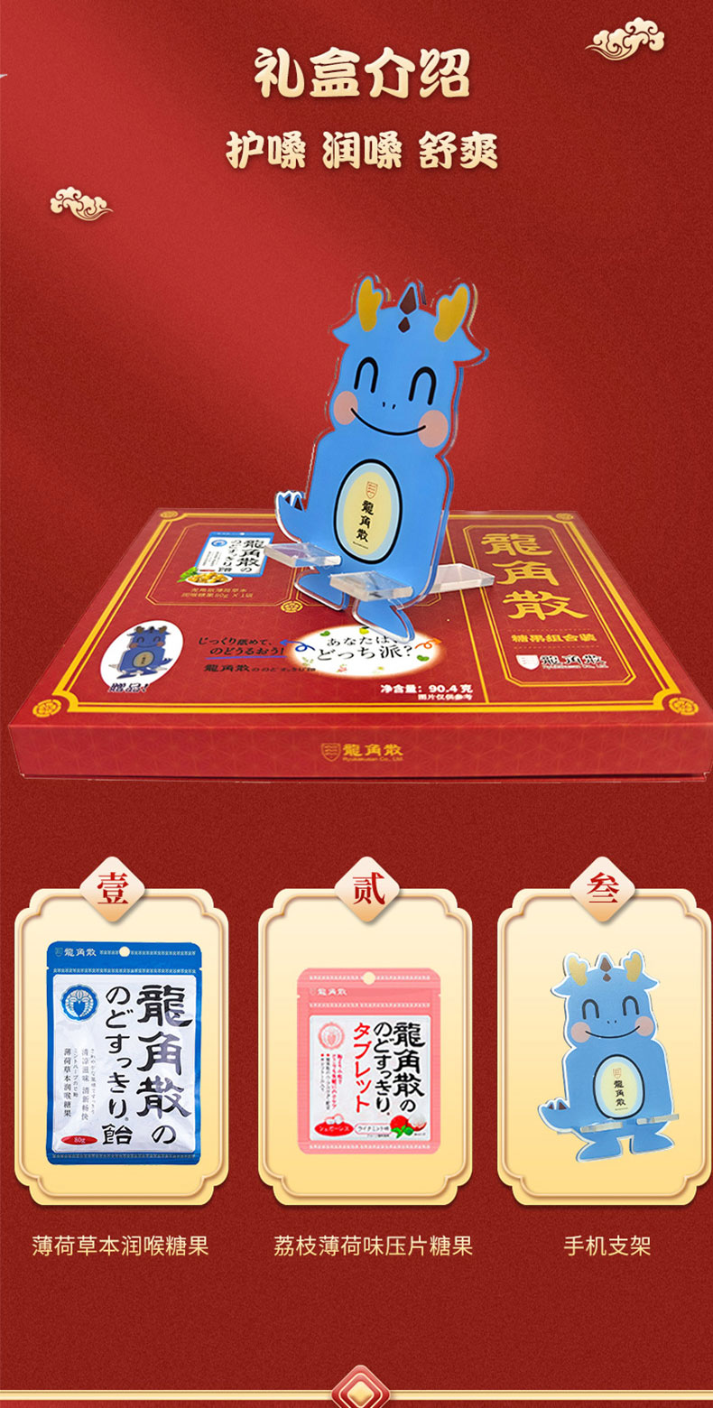 龙角散糖果组合装90.4g/060372 内赠手机支架教师节礼物实用送老师礼盒装龙角撒喉糖含片