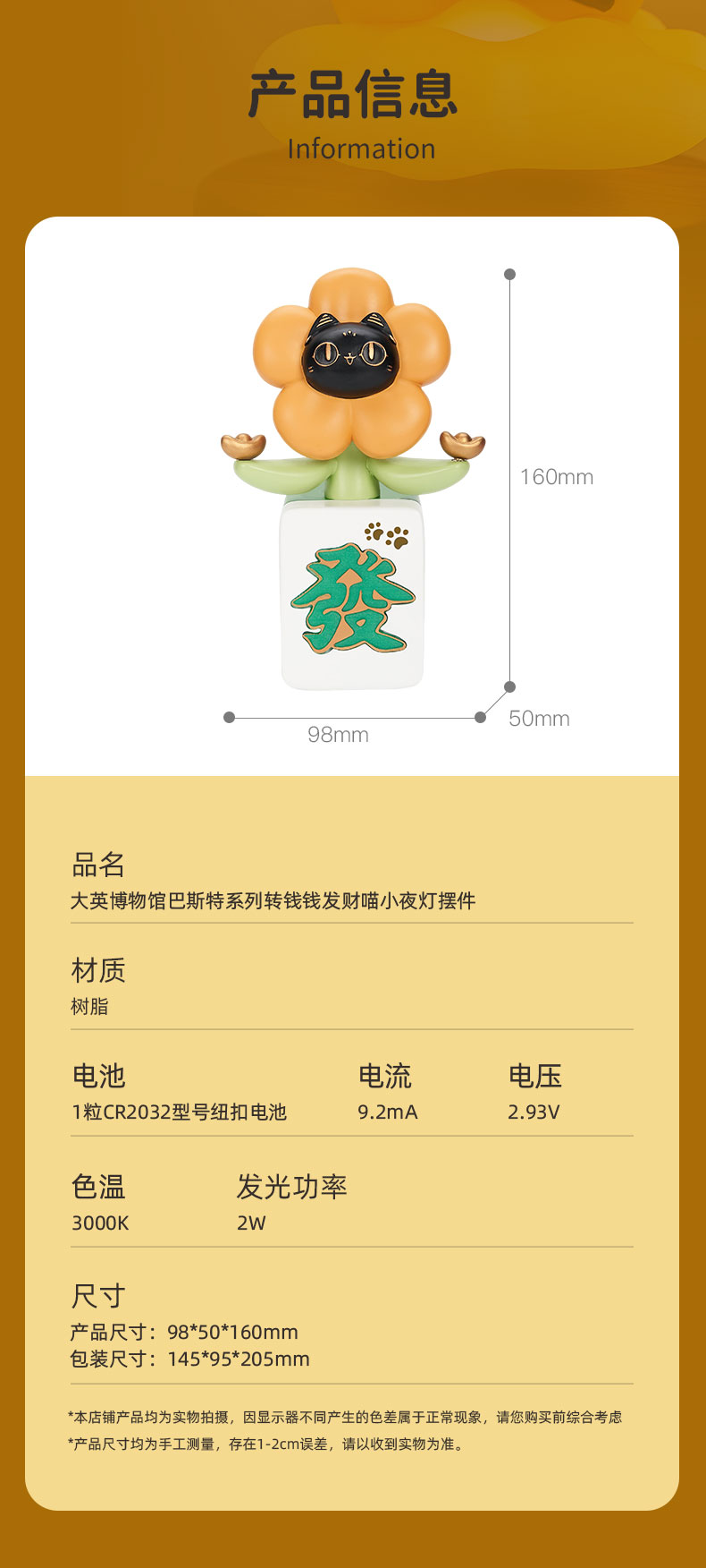 大英博物馆 巴斯特系列 转钱钱发财喵 小夜灯摆件
