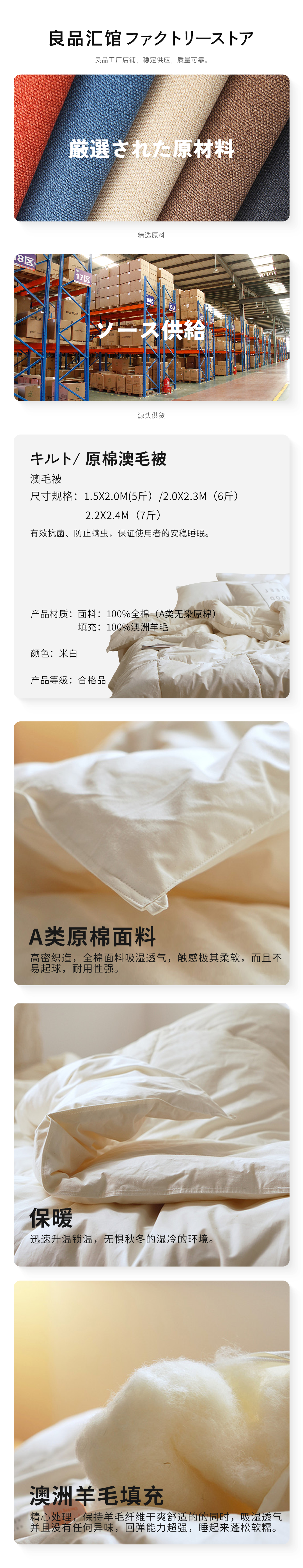 原棉澳毛被100%羊毛被 美利奴羊毛被芯+100%原棉白色被子秋冬 A-5521