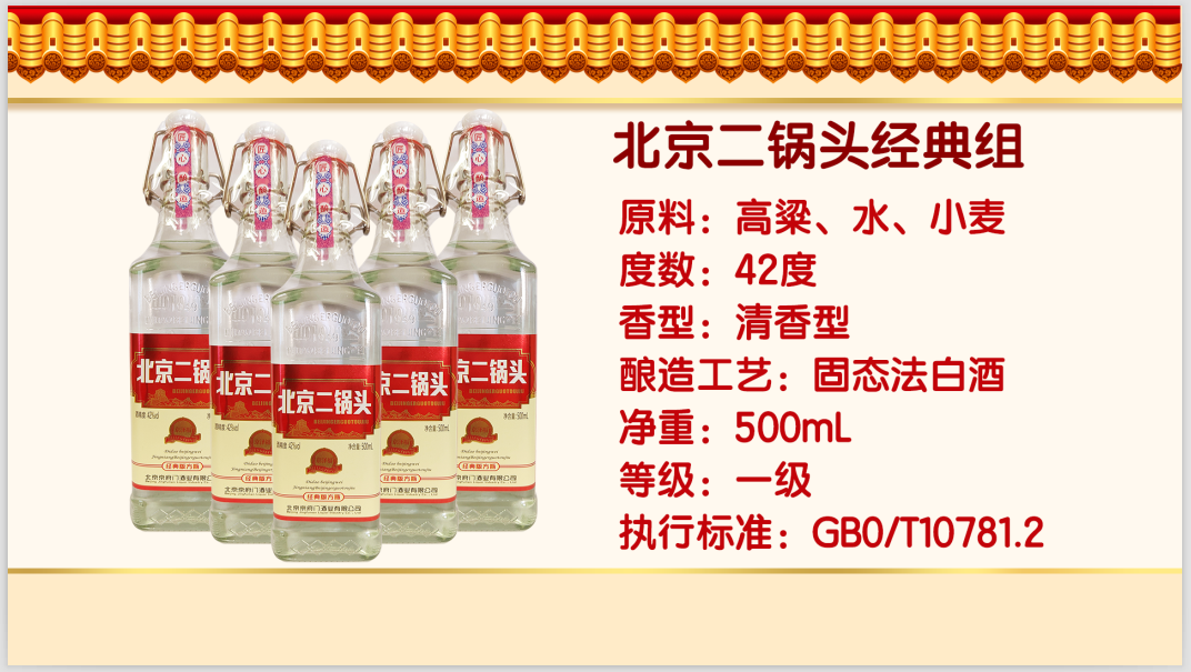 500ml/瓶*12瓶/箱*1、北京二锅头经典组(赠品)*1