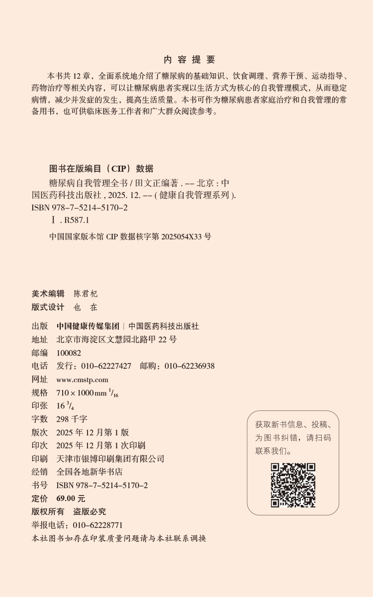 书名:糖尿病自我管理全书(健康自我管理系列)