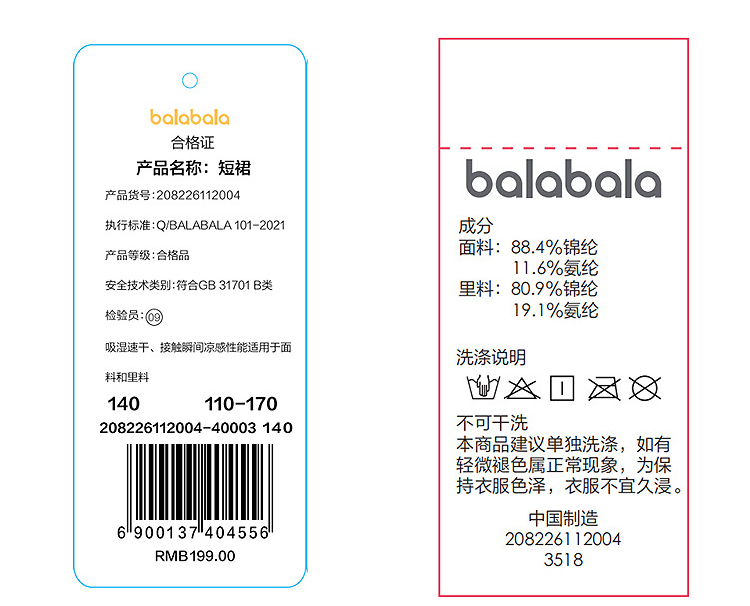 【balaOne】巴拉巴拉童装女童短裙儿童裙子2026夏新款工装裙速干