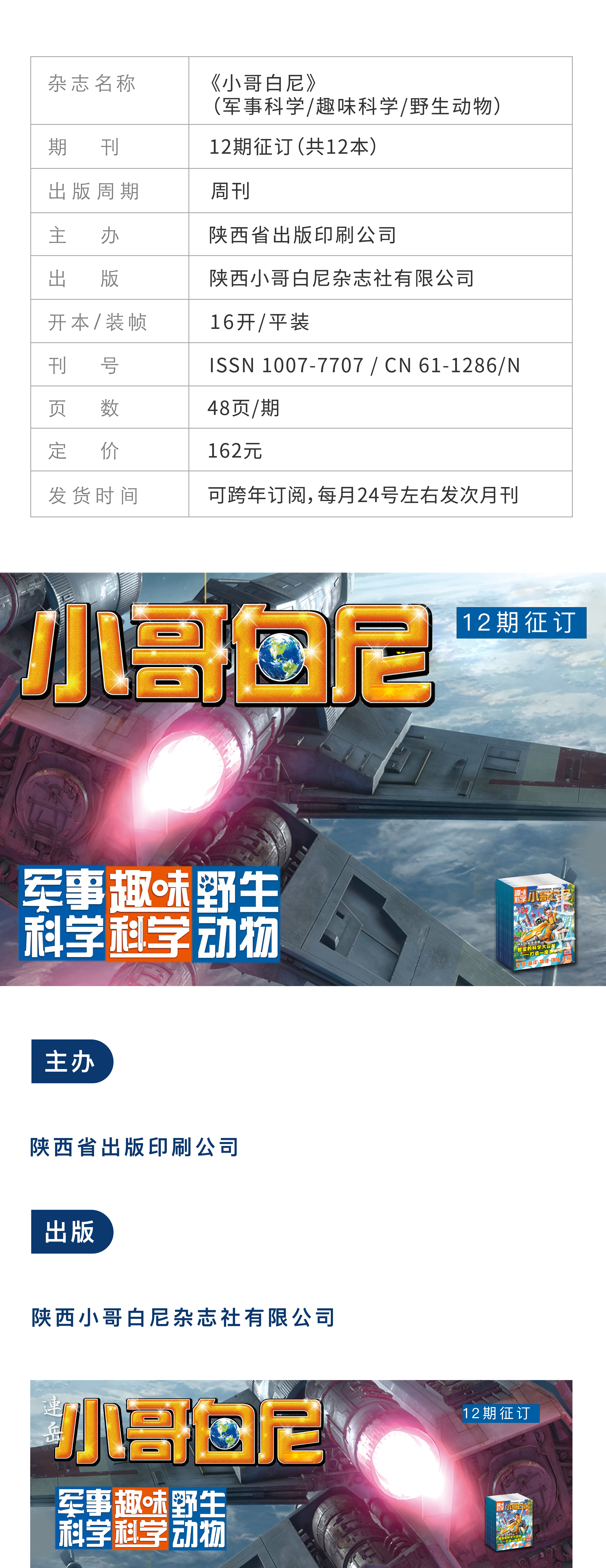 《小哥白尼》(军事科学/趣味科学/野生动物)12期征订(共12本)