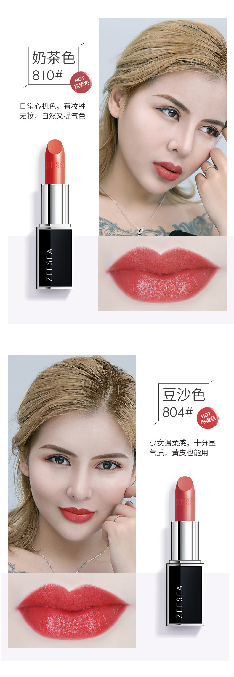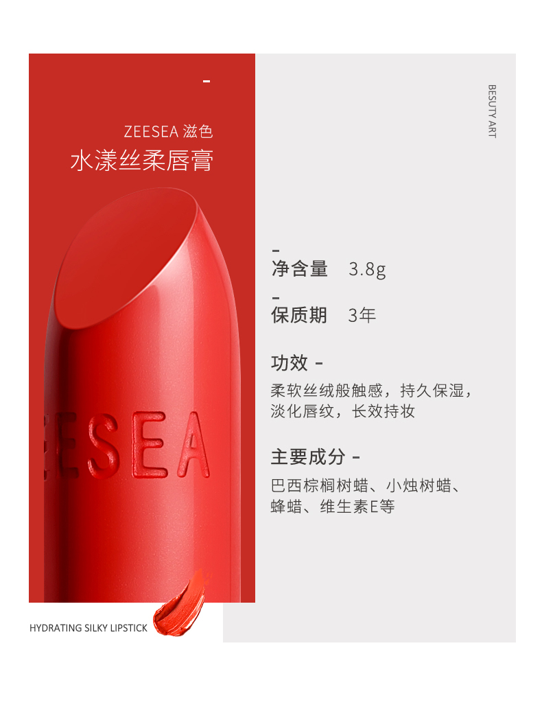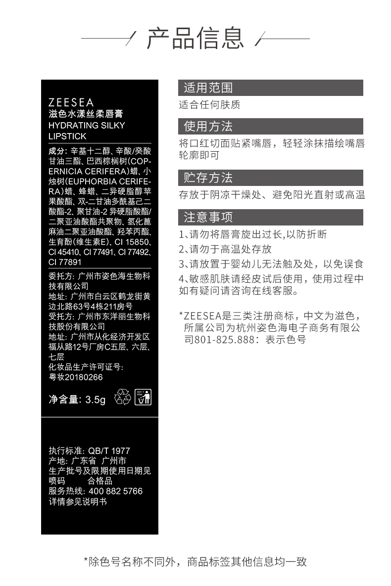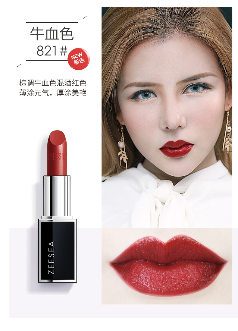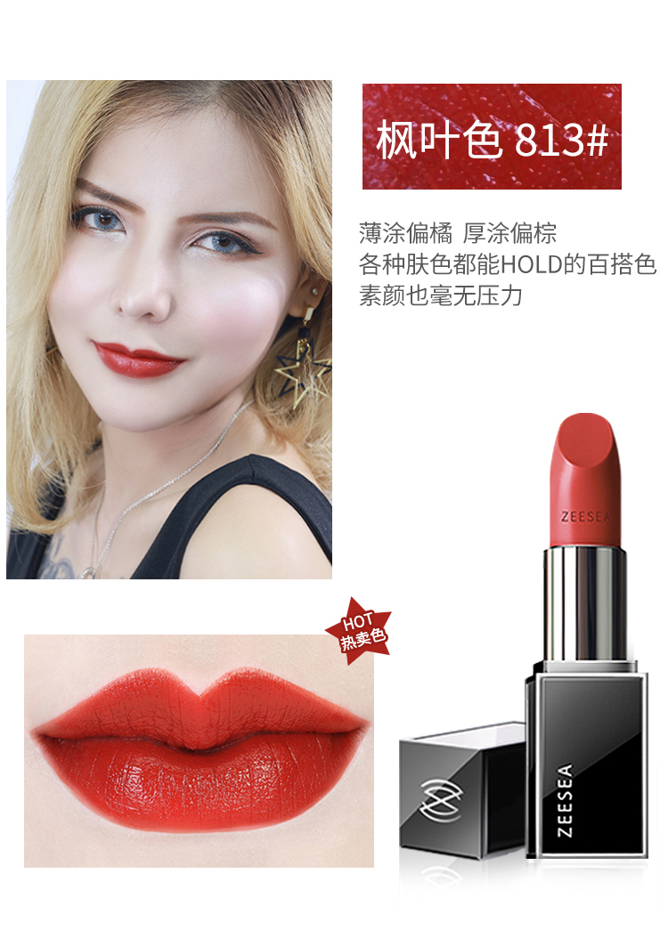 [新色上新 口红]【3件5折丨专区购满3件即送卸妆水50ml】[小滋特惠]ZEESEA滋色滋润水漾丝柔唇膏3.5g-黑管口红(拍下3件立减)
