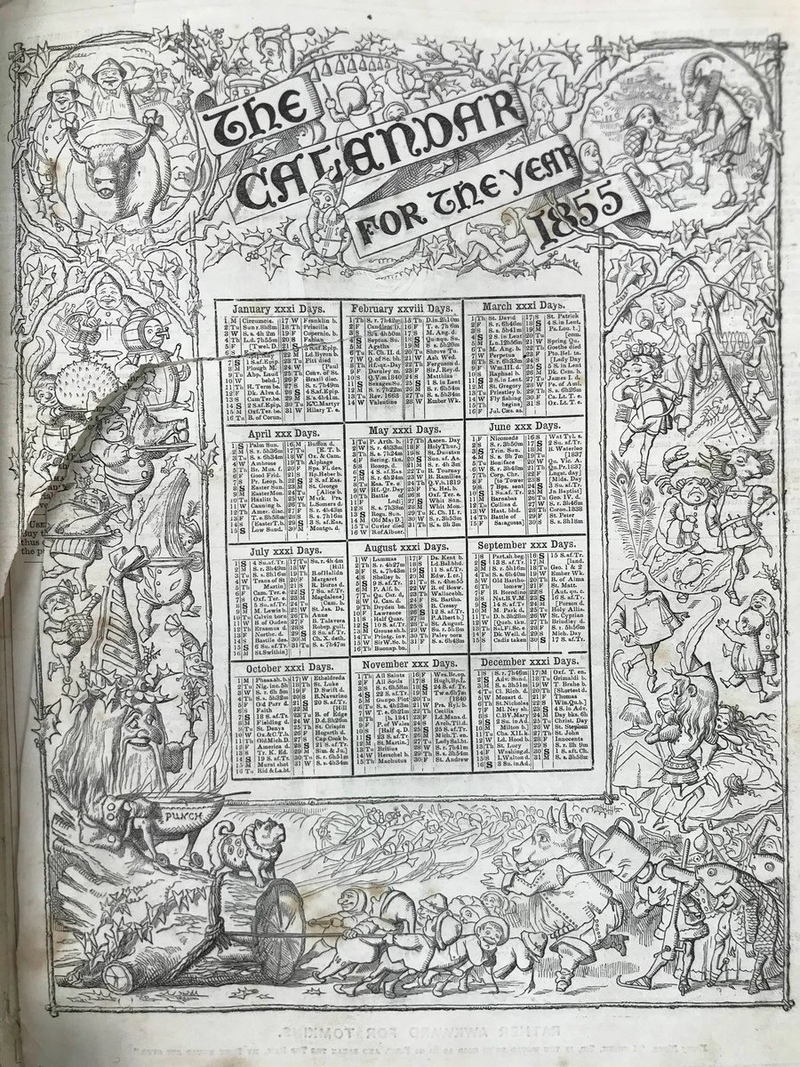 1855年 英国讽刺漫画杂志《笨拙》 数百幅插图 真皮精装16开