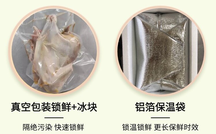 【名称】九华山正宗散养黄油老母鸡 【产品规格】单只2.0以上(含鸡珍) 【储存方式】-18°冷冻 【日期】现宰现发 【保质期】冷冻保存6个月 【养殖天数】生态散养450天以上 【喂养食材】山间草本,草虫,五谷, 【快递包装】真空塑封+泡沫箱+冰袋+礼盒 【发货地】 安徽 池州 【快递】顺丰京东 【发货时效】24~72小时 【不发货区域】不发货区域:西藏,新疆,内蒙,宁夏,甘肃,海南,云南,青海,黑龙江,吉林 【售后标准】生鲜产品,不支持7天无理由!!