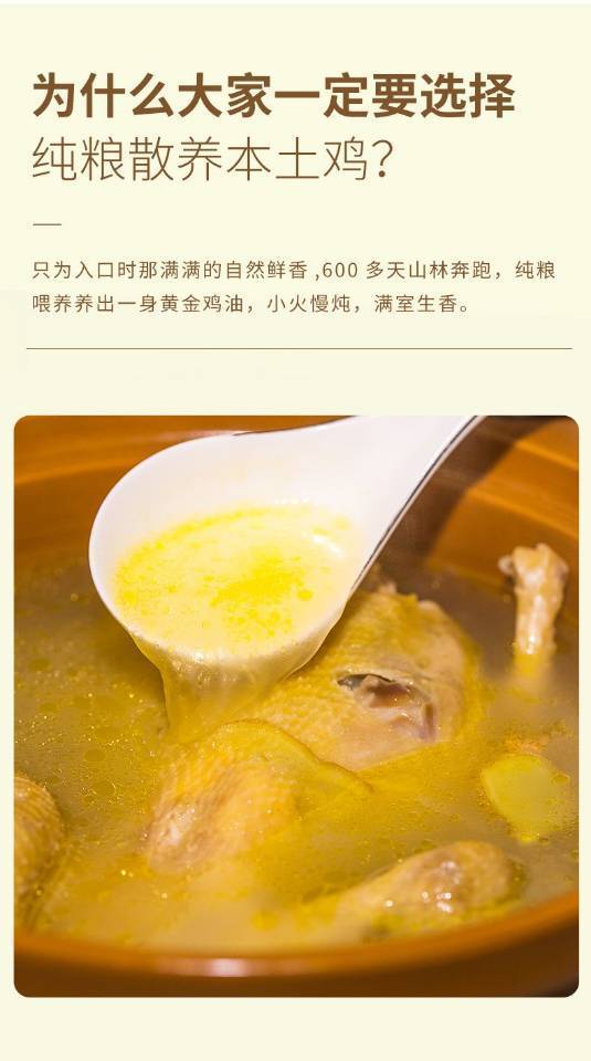 💦 心爱的人回家,疲惫不堪,一碗地道🐔 老母鸡汤,入心,入肺,❤️ 瞬间满满的幸福, 常喝鸡汤有助于御寒,😿 缓解鼻塞,温中益气,保护心血管,预防感冒 提高免疫力,增加食欲! 👉 这是一群在林间散养500天左右 每天吃五谷杂粮、昆虫,喝甘泉,自然生态的青阳土鸡 新鲜宰杀处理后急速冷冻,一站式送🚚 🚚 到您的餐桌 ! ❤️ 高端的食材往往只需要最朴素的烹饪方式(舌尖上的中国)