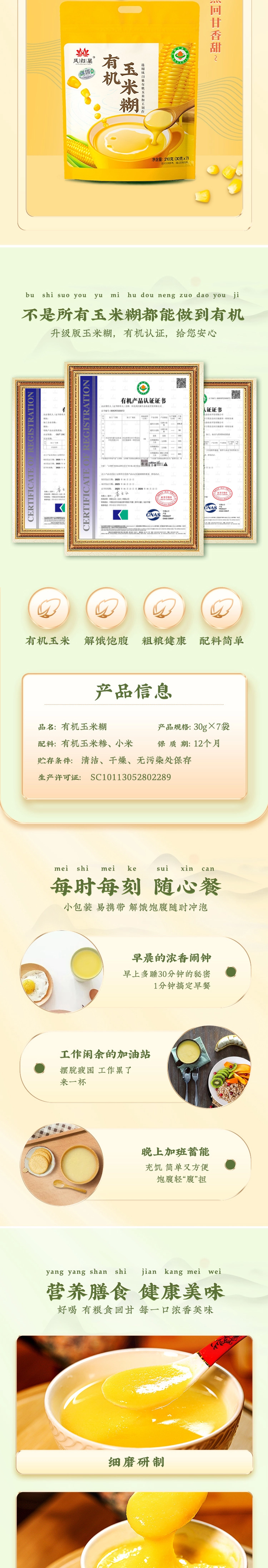 凤归巢 有机玉米糊 30g*7包/袋 营养早餐 冲饮即食早餐午饭饱腹方便食品